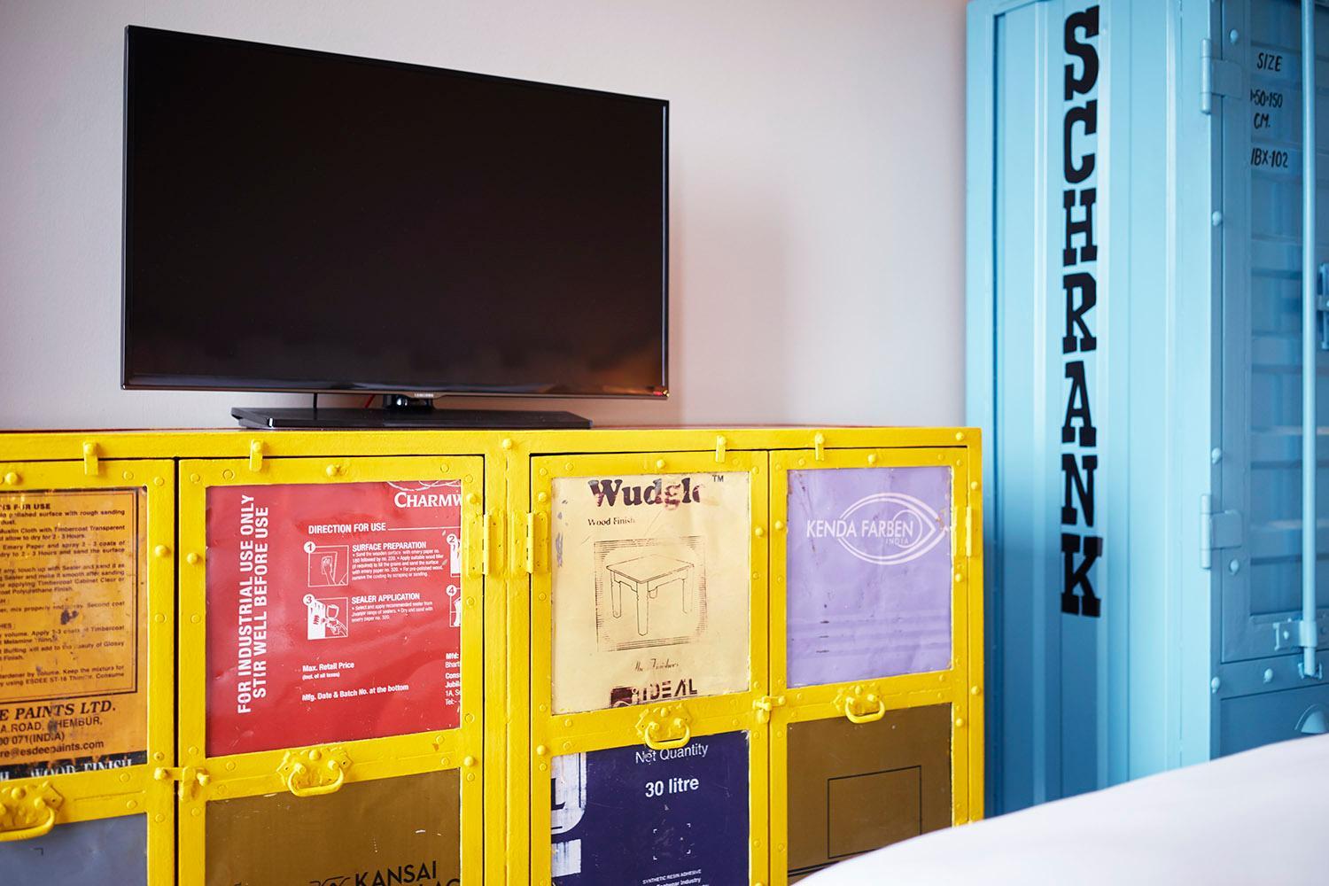 Kamer is zo klein dat je op je bed moet staan om je gordijnen te openen. Een douche met douchegordijn en de kast om je kleding in op te hangen is een oude metalen box