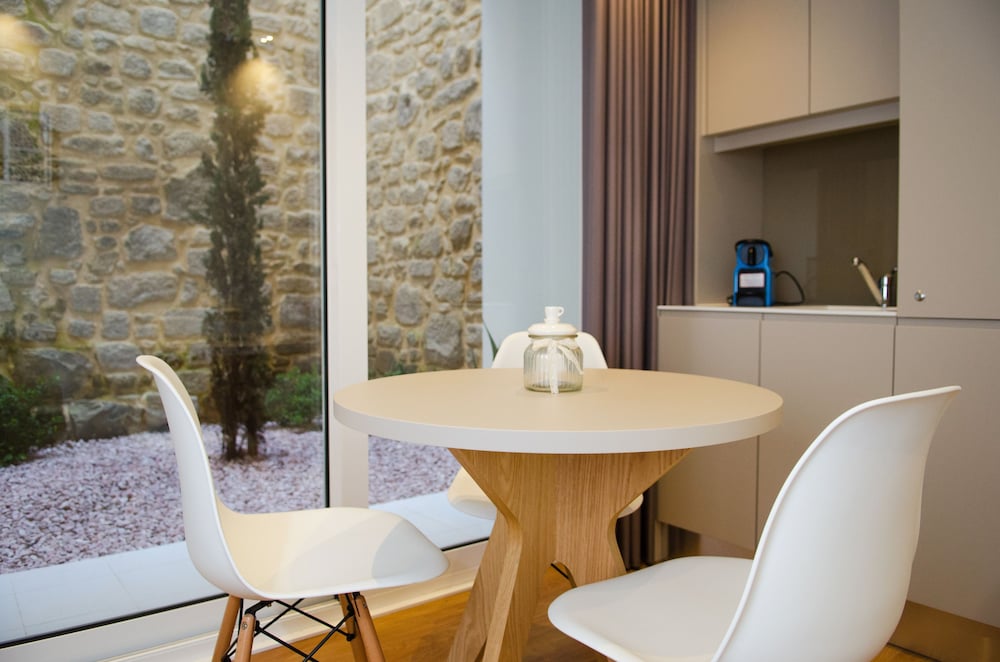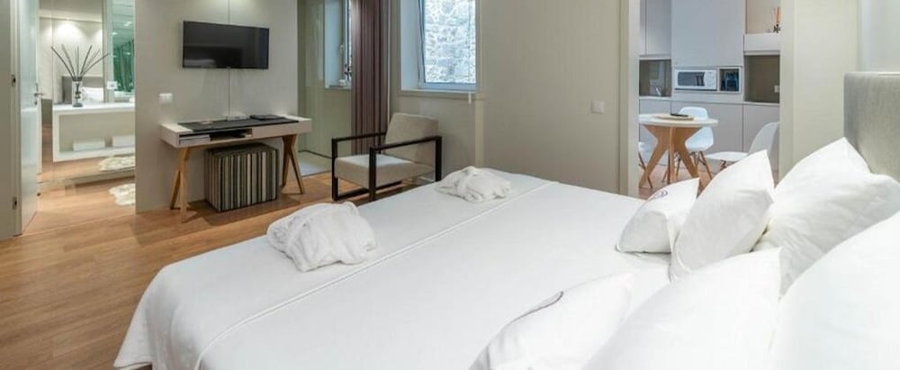 We initially planned to stay in Braga for three days and then travel throughout the region. We liked the city, and especially this wonderful small hotel, so much that we stayed for a full week, and used it as a base for visiting other towns. Our room was quite pleasant, with modern decor, a very comfortable bed, and a decent sized (and attractive) kitchen area. Some people have complained about the fact that the shower has a glass wall that looks out onto the room, but you can lower a shade for more privacy if you wish. The location is amazing, 1/2 block from the cathedral but located on a small alley which was very quiet despite the lively seen in the cathedral plaza. The staff is very friendly and goes out of their way to make you comfortable. I would absolutely stay here again.