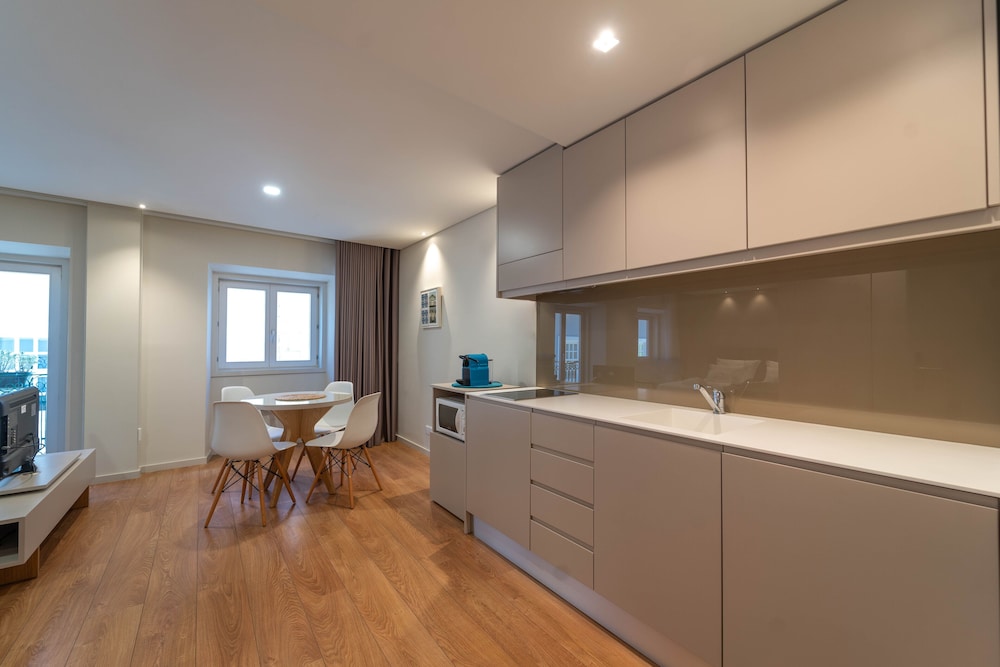 Fabulous Quality Accommodation in Great Location. The suite was on the fourth floor very classy immensely well equipped with kitchen gear, Nespresso, kettle iron cutlery and crocks. Aircon large and comfy bed great bathroom and shower. Right by the Se go right at the antique shop. If I wanted to be picky I'd say that there was no room clean in three days unless we paid €25 and that meant no new towels which in the heat were needed. But excellent nonetheless will definitely come back.