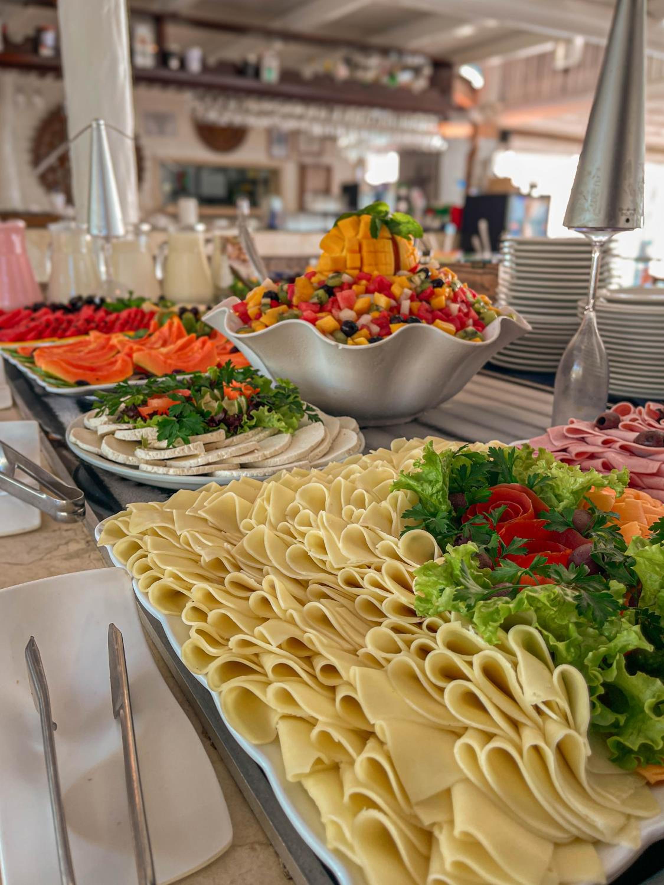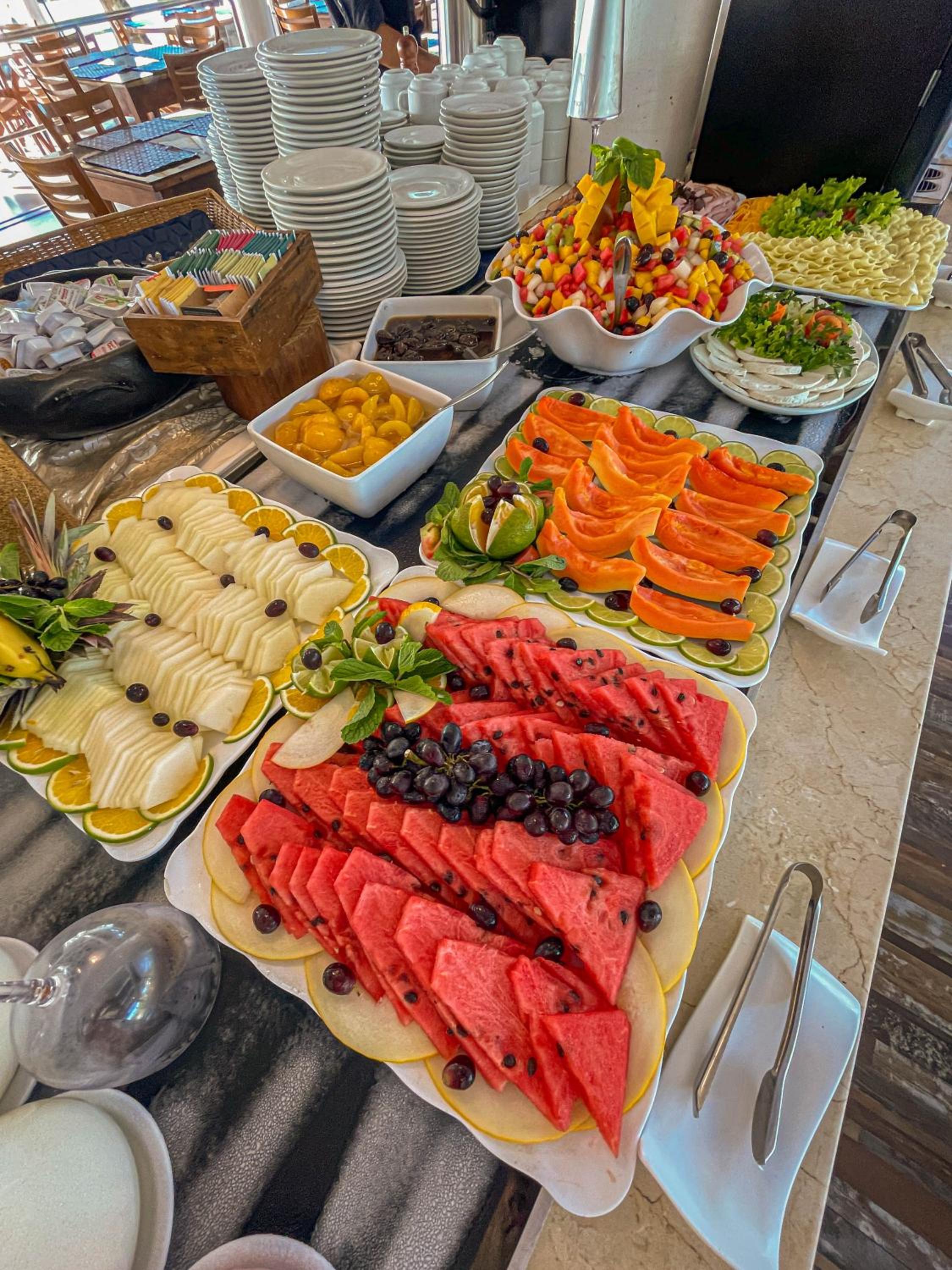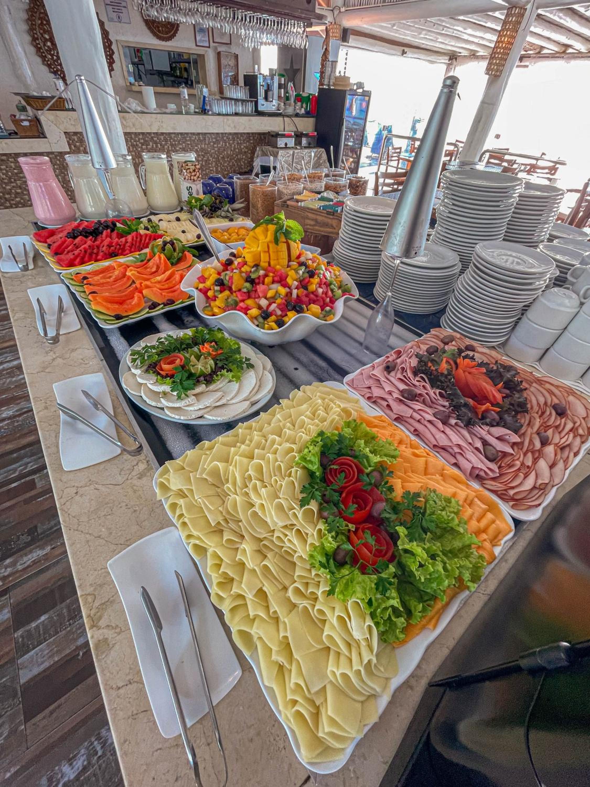 O café da manhã delicioso demais. A localização próximo a praia.