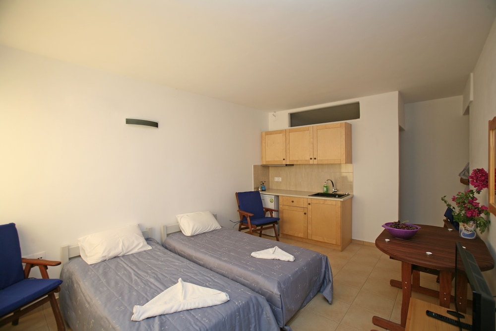 The room was located close by Batsi center, (10-15mins walk) and the view from the room was astonishing! The owner of the facility was very polite and helpful. He answered all of our questions and gave us great tips on places to visit.