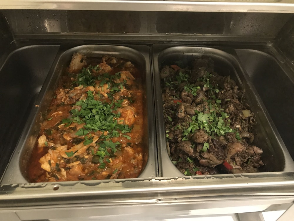 The hotel is nice. The room was a bit small but it was comfy. The staff was amazingly helpful in all matters. But...the kitchen was perhaps under repair? Meal choices were slim and took forever. Also, there was a literal crime scene a stone's throw from the hotel. I was walking to get some local food and passed by police officers taking photos, dusting for prints, and putting up little yellow signs with numbers on them. Not cool.