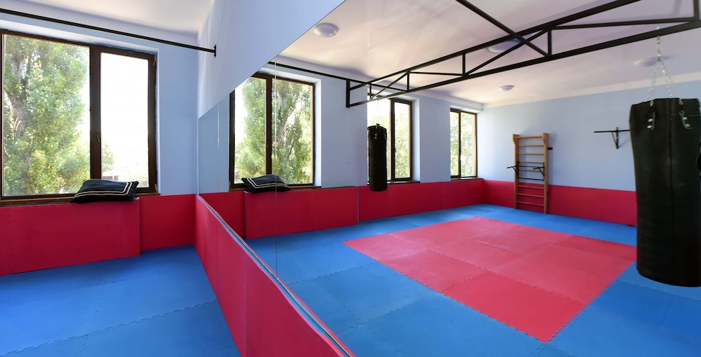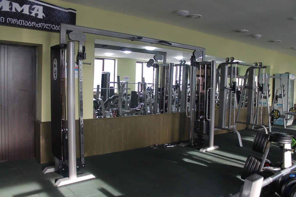 What a good little hotel! This is a small hotel located in suburbs, walking distance to the metro.immediate neighbourhood has a definite local feel, and yes the hotel is surrounded by car workshops, but also local cheese sellers , bakers , veg merchants and all of real life. The area feels safe. The staff are welcoming and aware so inside the hotel one feels safe as well , given the small side of the hotel I never saw reception and door unattended. The rooms are modern and simple. I had to ask for a kettle and was provided straight away also a safe, unusually it was handed to me and I was able to choose where to put it in the room. But nevertheless the room had double bolting locks. Breakfast was a small selection of high quality local products. Carbs and protein no veg or fruit, but these can be bought locally and at modest price. I choose this hotel because of the fitness center. Which was exceptional, I travel the world booking my hotels braised on their fitness center and this one is the best ever. I should say it is a SEPERATE business within the hotel building, the MMA staff run this place with pride. The equipment is new and well maintained. The charge is five lari about £1.60 each visit . No big deal BUT Expedia should be advising their clients of this. About the airport transfer. The hotel will provide a taxi collection OR drop off this is free of charge. But just one way, This again should be made clear. Great stay overall.