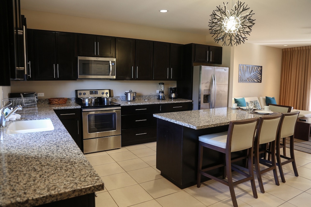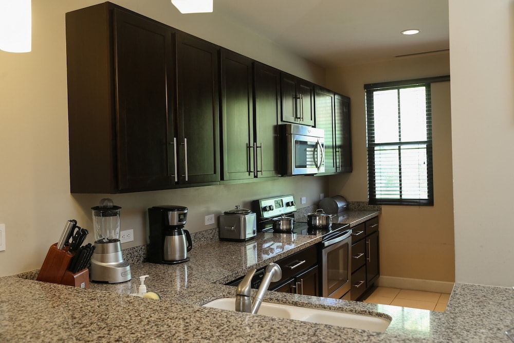 The unit was dated and poorly maintained. There was no water pressure at all in the kitchen and washing dishes was difficult. The showers had only slightly better pressure. There was missing knobs on doors, and shutters had not been dusted in a very long time. The stove was also missing a knob. The refrigerator leaked water. The office staff were rude. We requested dishwasher tabs and the housekeeping staff delivered them while we were out and left our door unlocked for the entire day. Very unimpressed! Definitely not luxury, and barely passable as sufficient.