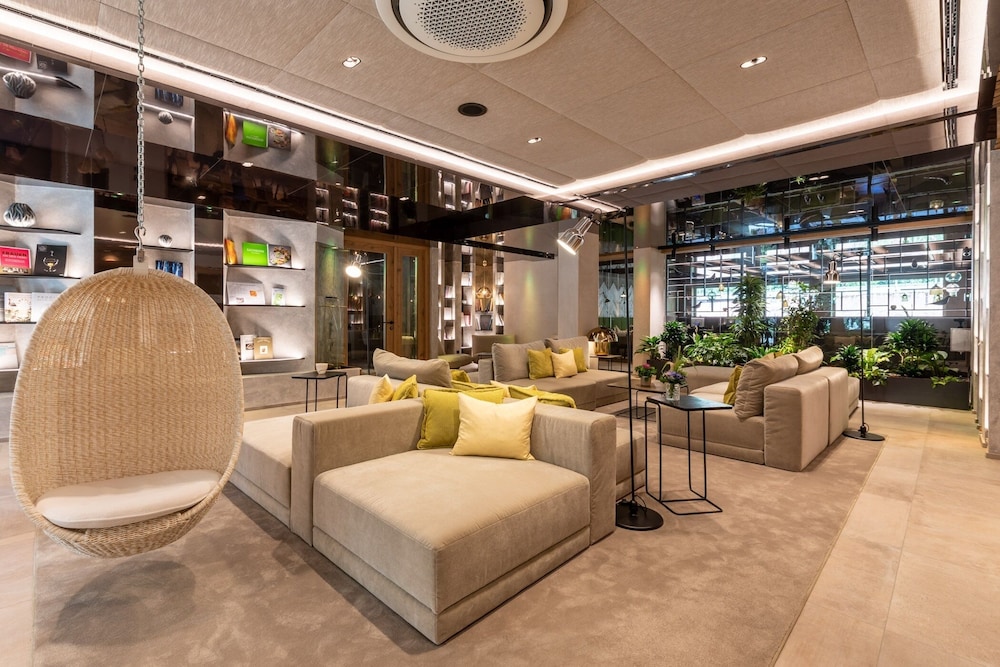 Hôtel rénové , chambre design et restaurant de bon goût et jolis ; piscine sur toit merveilleuse et transats/ sièges ; piscine intérieure et saunas top