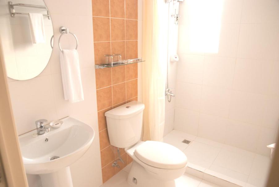 The bathroom is very simple and the AC makes noise