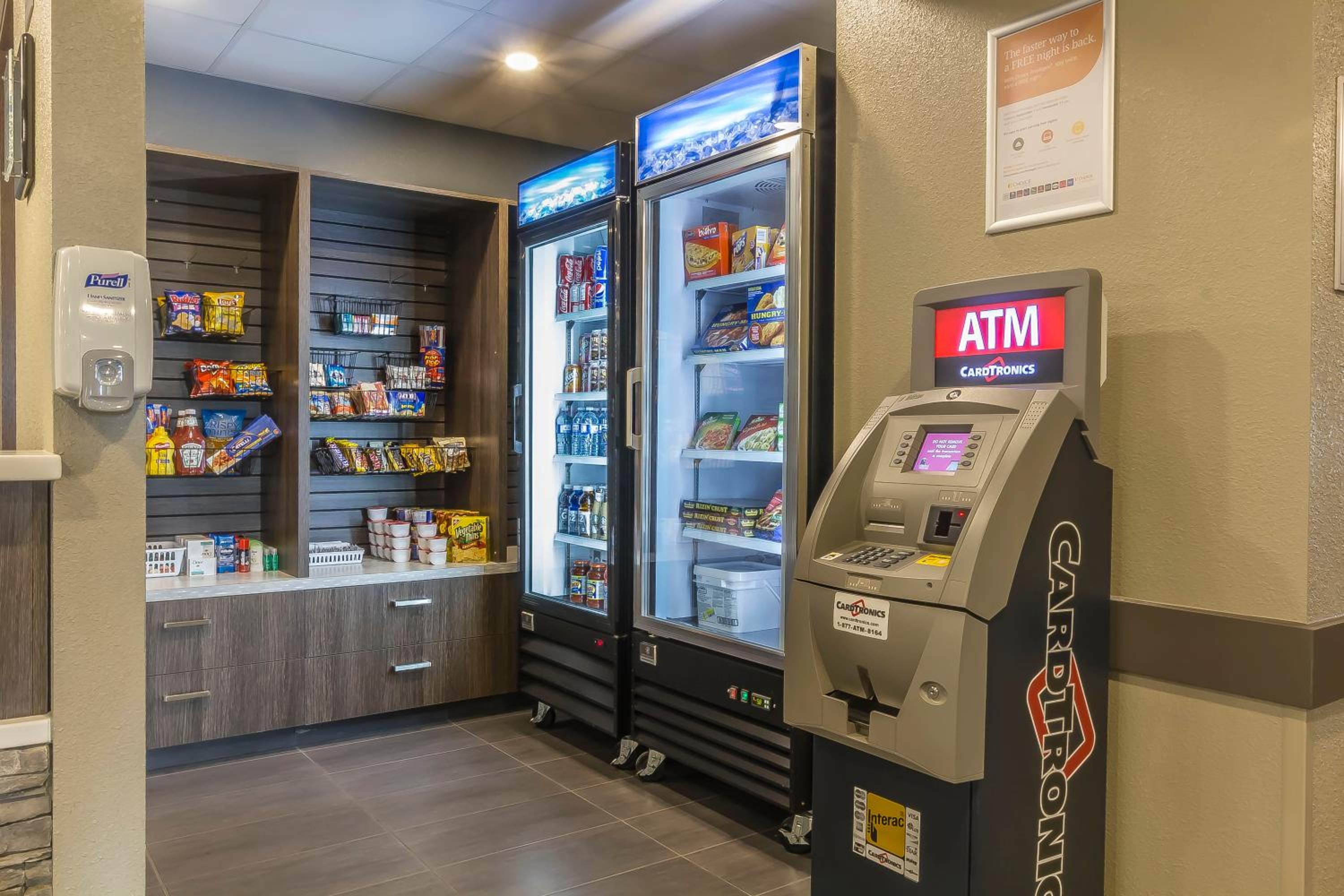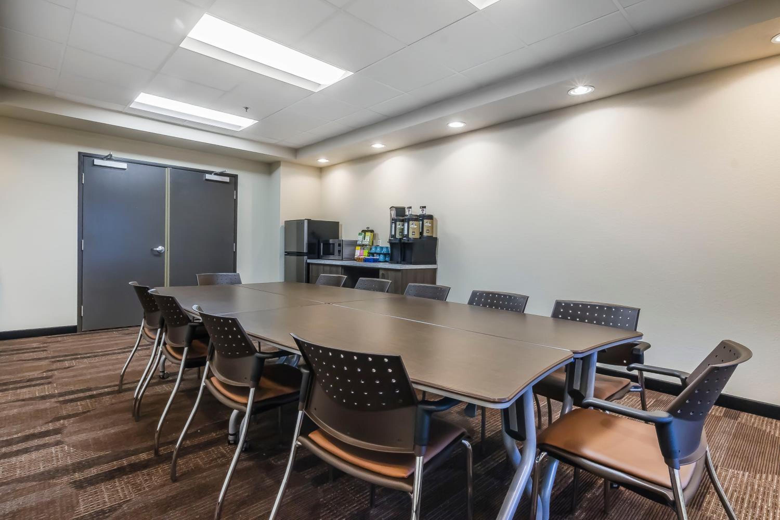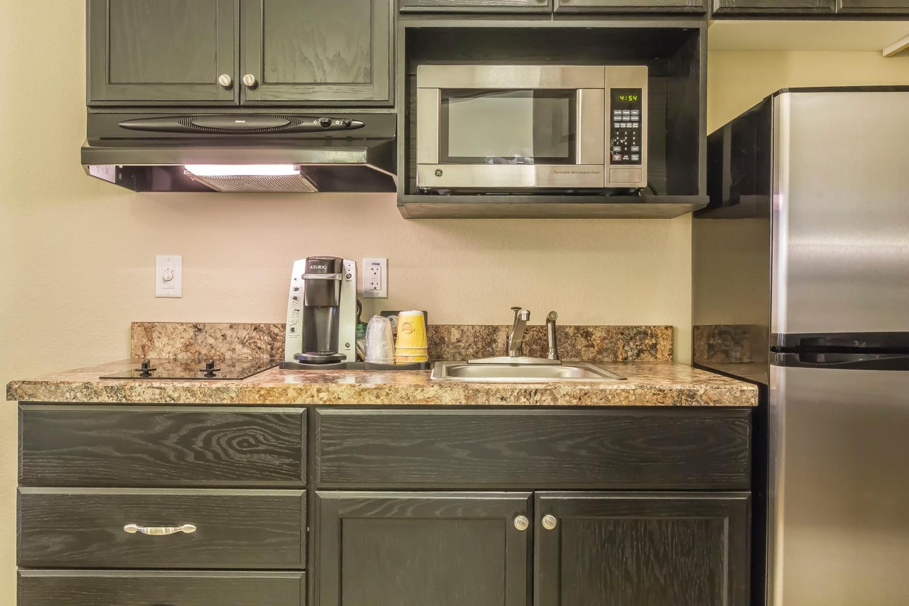We enjoyed the fancy coffee machine and fresh baked cookies in the lobby. Breakfast was good. Beds and pillows were comfy. Kitchenette would be good if staying longer.