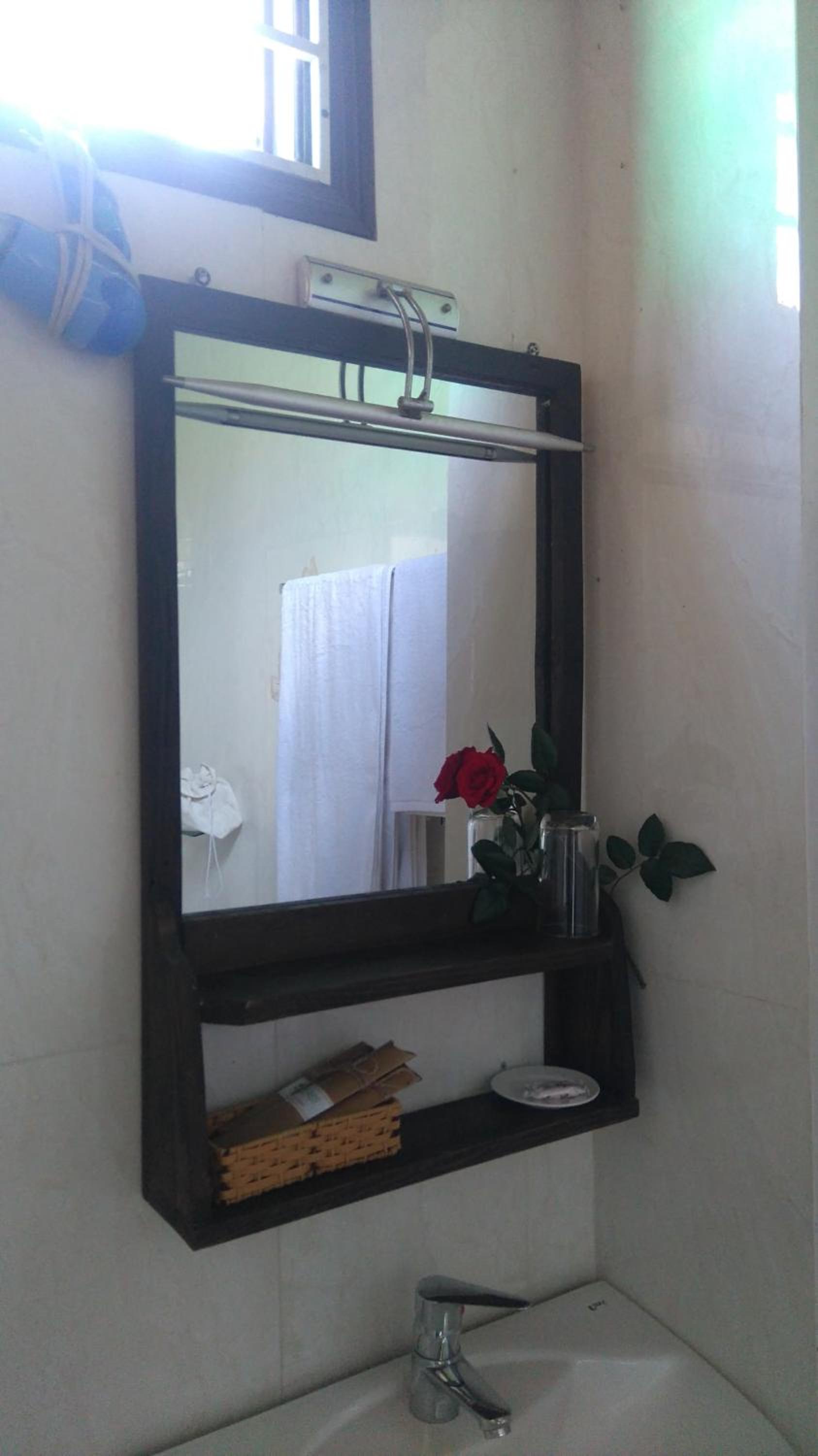Il y a une fenêtre qui donne sur le mur. La chambre est donc très sombre. Mais vous le savez quand vous réservez.