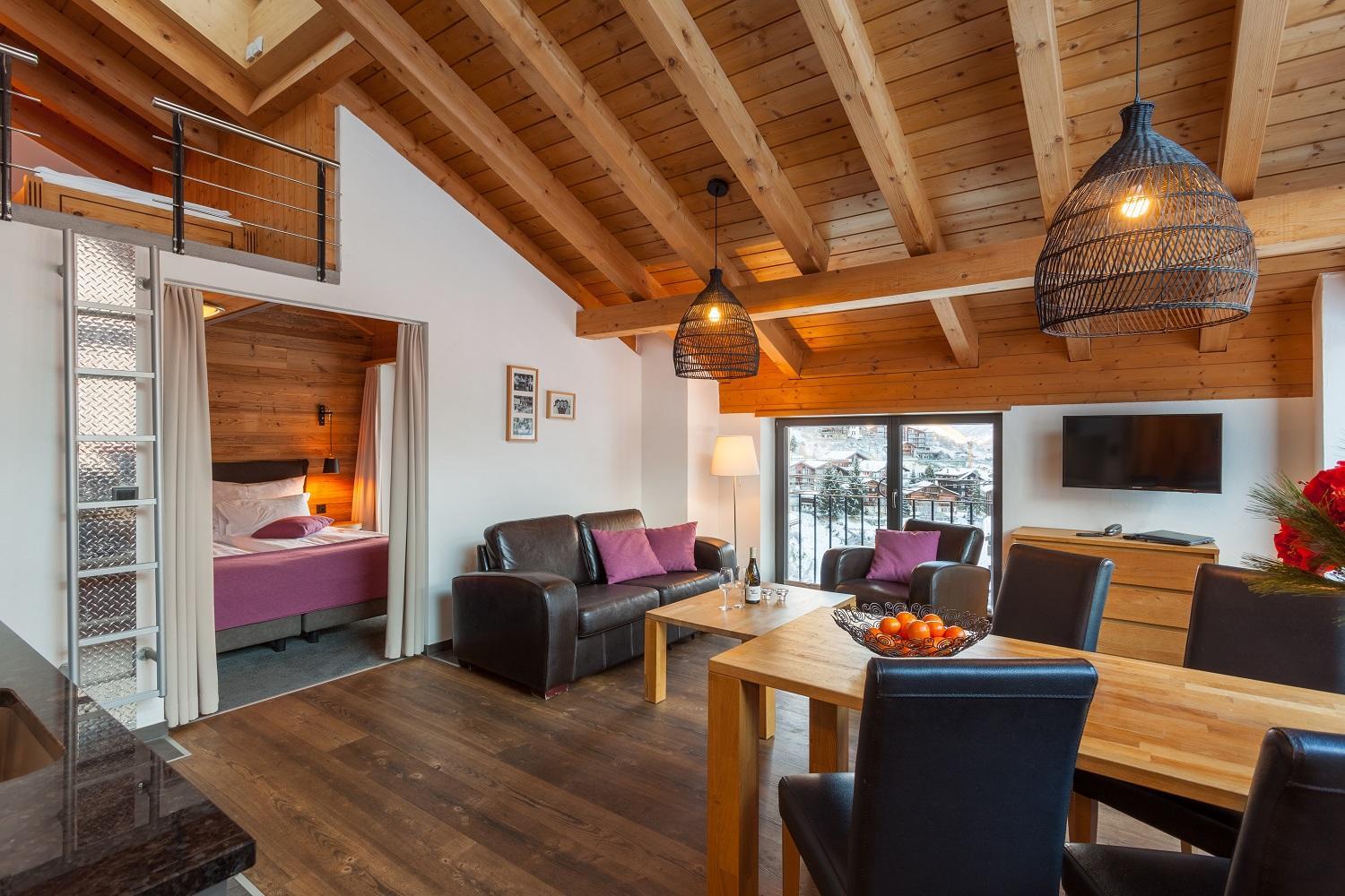Conveniently located just a short walk from Zermatt's center and the Matterhorn railways, our apartments offer easy access to ski stations and shuttle services. Reach us effortlessly via an elevator through a tunnel, with bus transfers included in your ski pass for a seamless travel experience.
