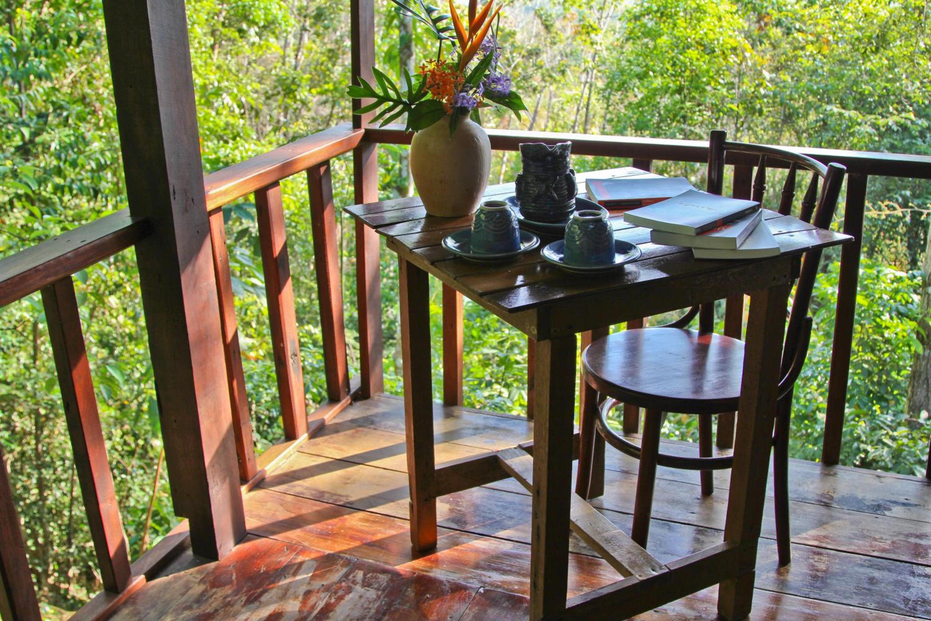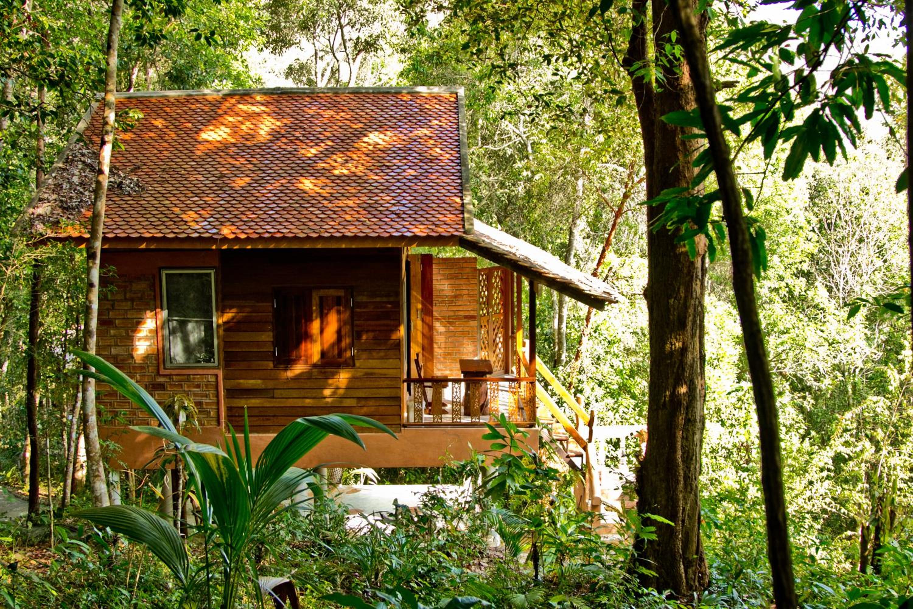 Unique experience. Geckos and bats. Forest style Thai food, fern leaf salad and chicken cooked in a bamboo stick, kaffir lime leaf and pineapple smoothies, all delivered to terrace of bungalow for private dining.
