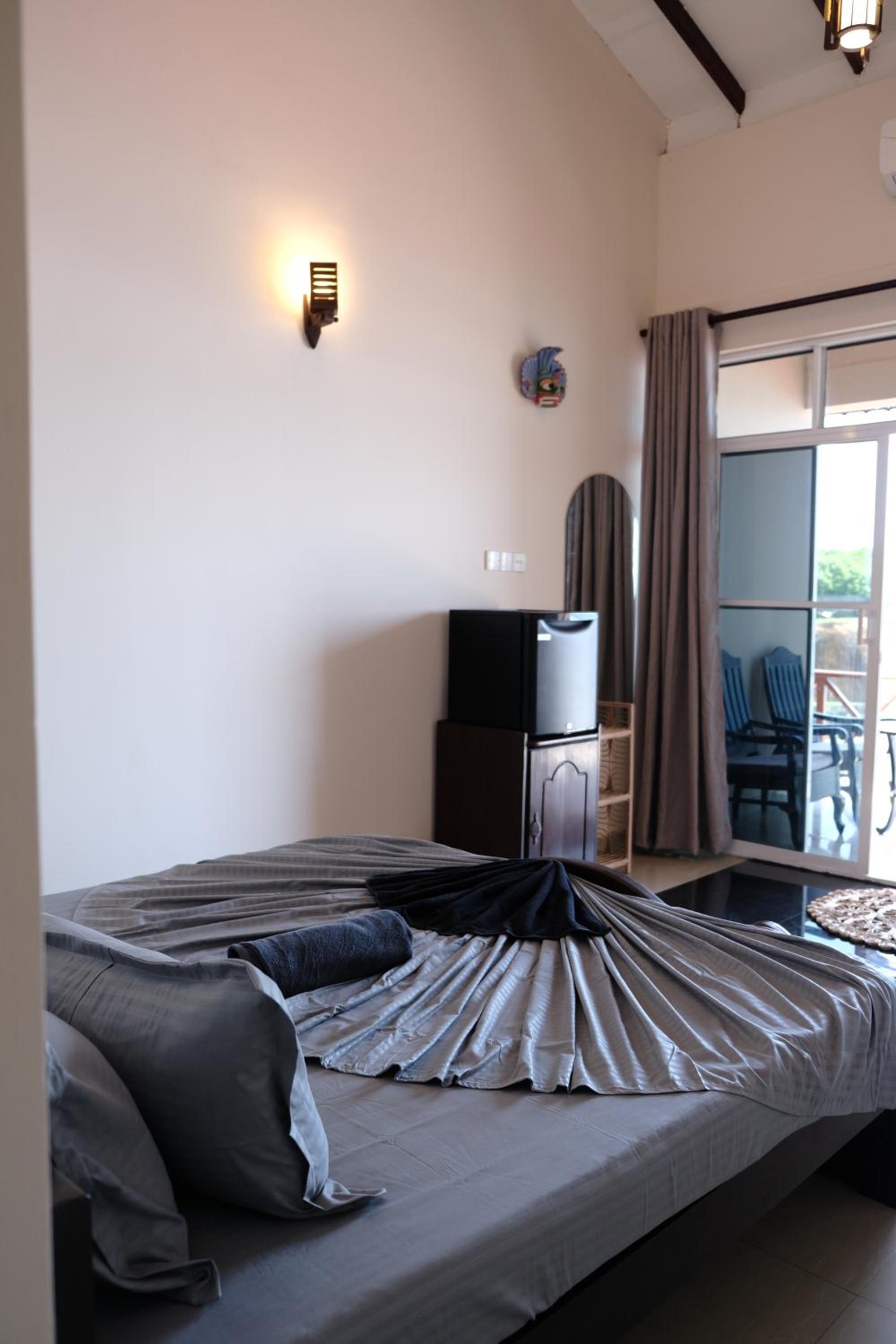 Each room at Bay View Villa is thoughtfully furnished with a fan-cooled ambiance, an ocean-facing balcony or patio, and a cozy four-poster bed. The private bathrooms are equipped with modern amenities, including a refreshing shower and plush towels.
