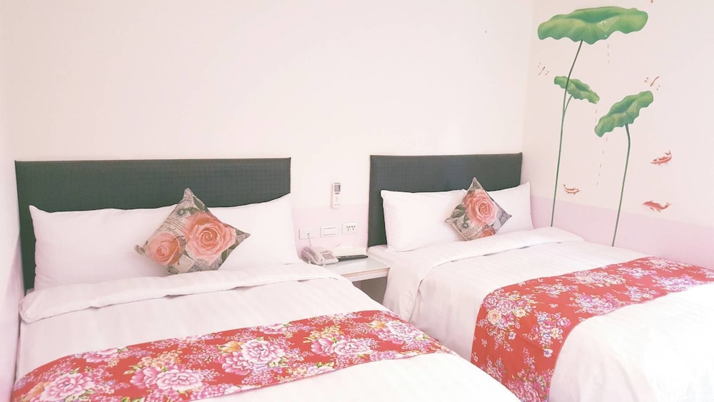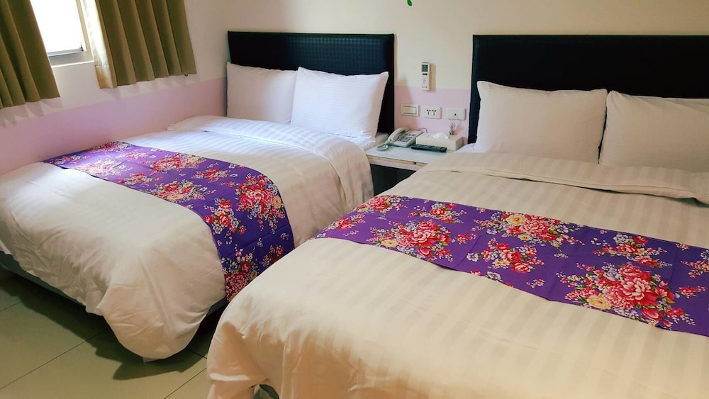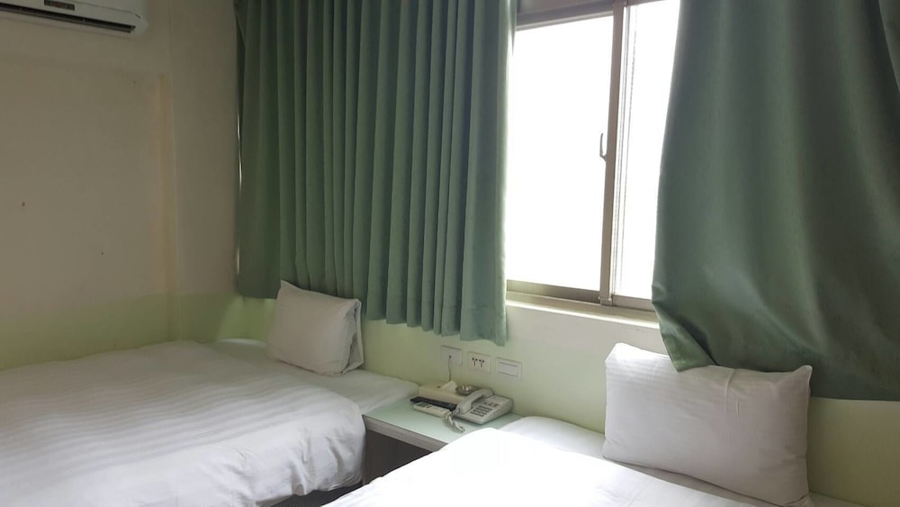 小房間擠了兩張雙人床一張單人床,所以沒什麼多餘的空間放東西,開空調時還有臭臭的味道,飯店招牌有寫免費停車,我們是從訂房網站訂的所以沒有停車位,感覺不太好