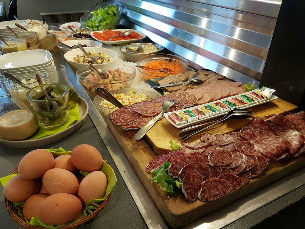 behoorlijk prijzige kamers , proper , net , vriendelijk personeel , geen airco op kamer , gelegen langs drukke baan = lawaaierig met open ramen , eten is redelijk = in buffetvorm , geen lift , op mijn kamer was een onaangename , prikkelende geur niet herkenbaar , maar zelfs na 3 dagen met open ramen dag en nacht was deze nog steeds even prominent aanwezig . ik heb er het raden naar . ontbijt was redelijk