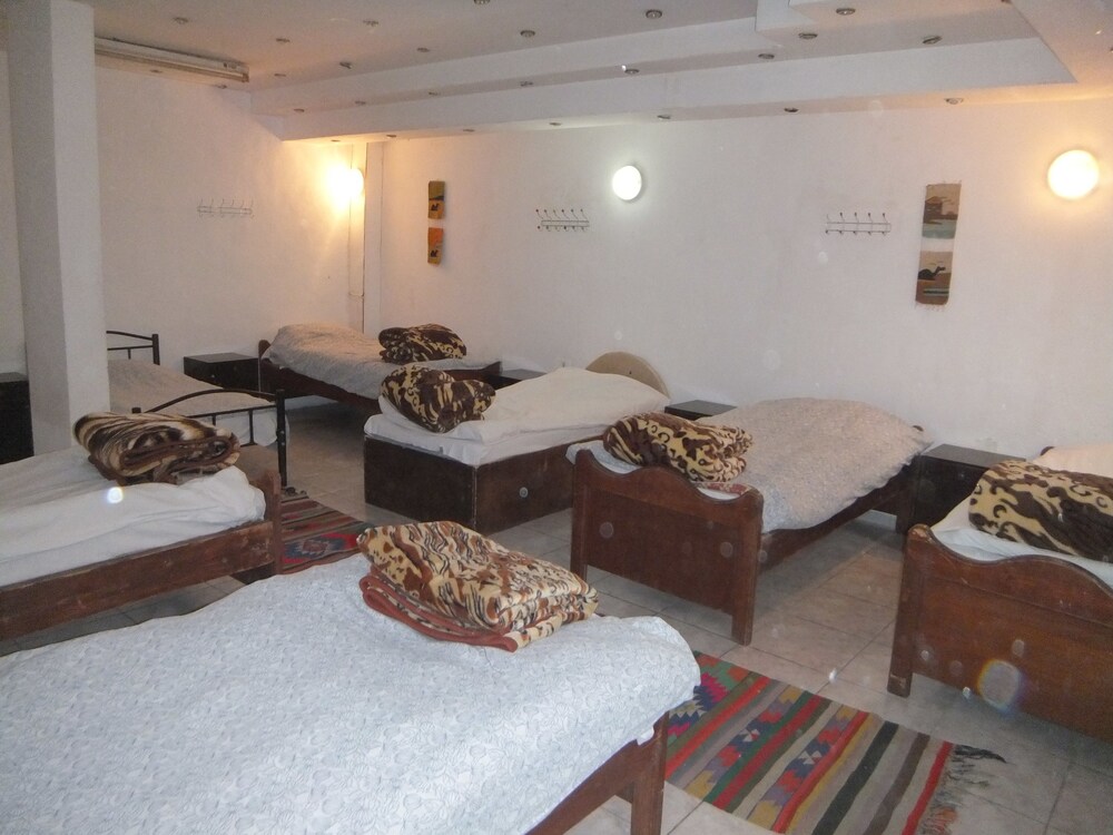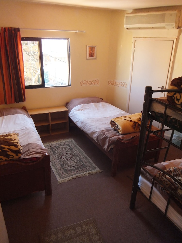 Great friendly and helpful staff and owners. Great dog mascot Betsy. Great central location, up the street to the bus station and only 25 min walk downhill to Petra entrancce. Very affordable room prices and packed lunch. Our room unfortunately felt a bit dark and damp, on the bottom floor at the back. (Towels wouldn't dry). My feet hit the foot board of the bed. And when you stand in the shower the curtain keeps touching your body.