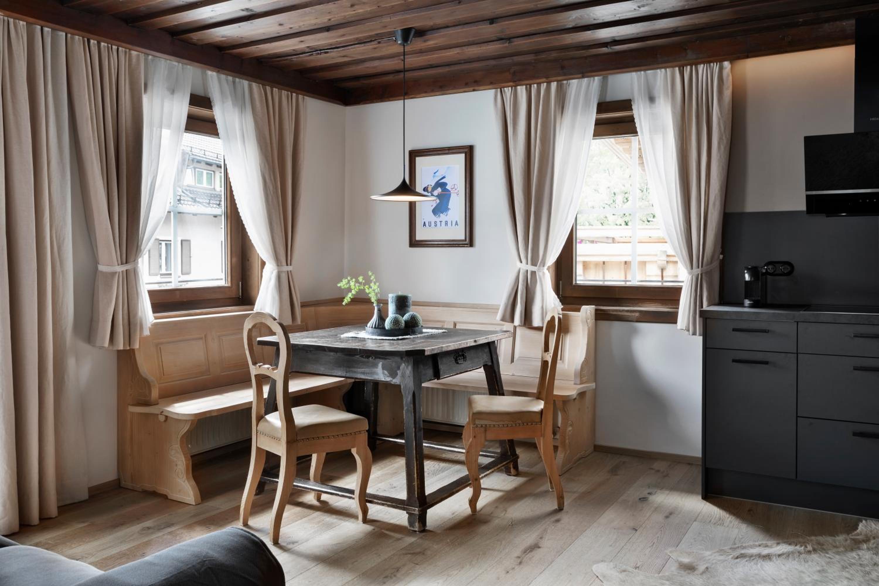 Well kept and idyllic place, family ran property by generations. Super convenient for ski holidays, with the ski bus at the door. Nice spa area and good breakfast. Very attentive hosts.