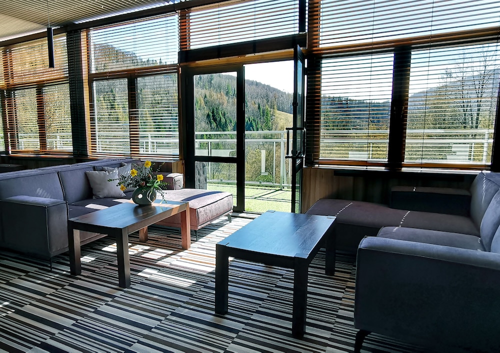 Bardzo fajne miejsce, w ostatni dzień spadło sporo śniegu także było jeszcze ładniej. Jednak kilka minusów się znajdzie. Basen i sauna są czynne tylko od 15-21. Także w przypadku krótkiego wypadu nie ma zbyt wielu okazji, aby nacieszyć się wszystkimi dobrodziejstwami tego miejsca. Restauracja czynna tylko do 19, także jak się chce coś zjeść później trzeba się posiłkować lokalami w okolicy. Kolejny kamyczek do ogródka, to stół do pingponga i piłkarzyki. Za mało miejsca, aby pograć w pingponga, w pokoju nie ma okna, a w dodatku przechodzą przez pokój rurki z centralnego ogrzewania co czyni z pomieszczenia swego rodzaju saunę. Reszta super. Pokój zabaw i gier ze sporym wyborem gier planszowych... Na prawdę sporo możliwości, aby spędzić miło czas.