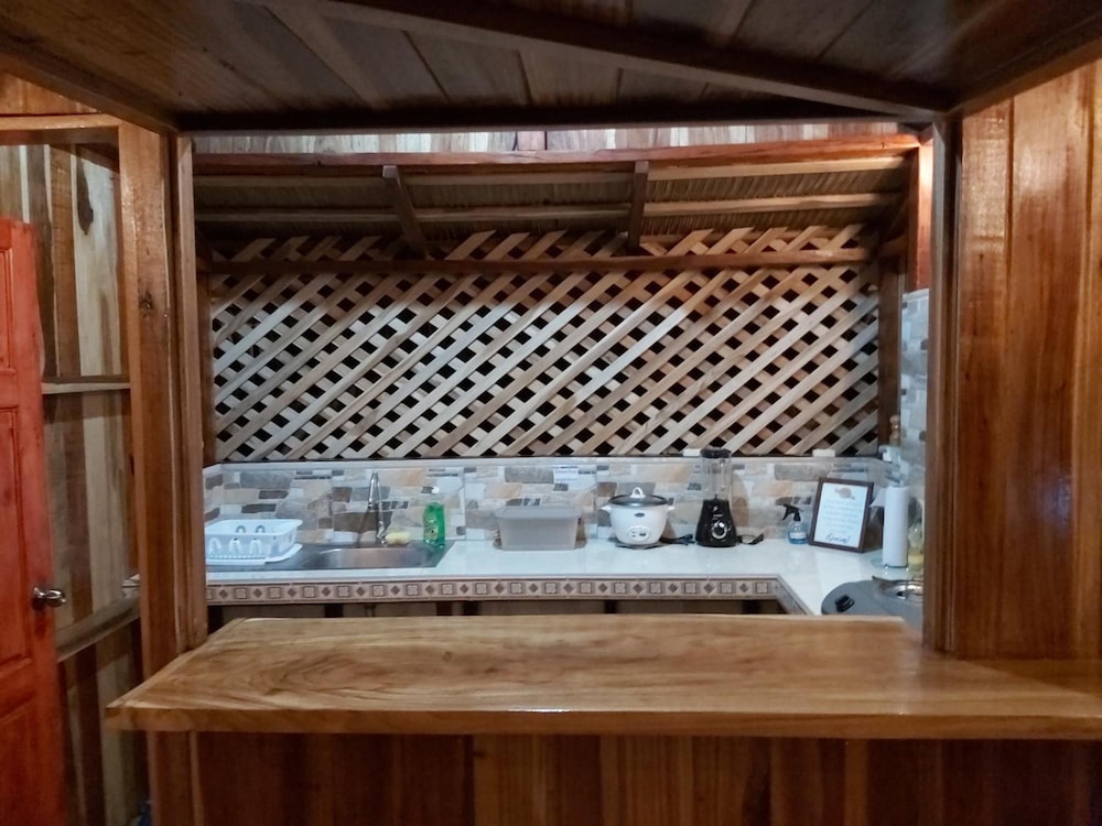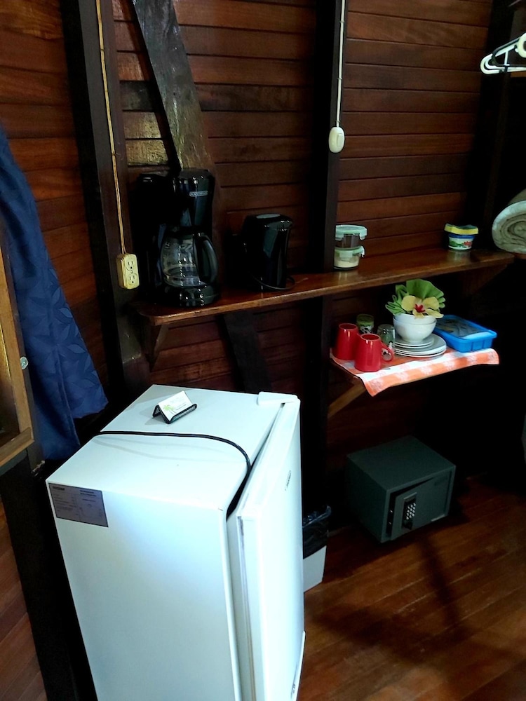 We loved our stay in this bungalow. Jungle and animals are right on your back yard as it's right next to Cahuita National Park. It's very basic room with two fans and no a/c, you get a bit of a feel to be out camping. There is a coffee maker and fridge, cups, plates and cutlery, so you can make breakfast for yourself after shopping at the close by store. Beach is only few minutes walk away as is the entry to the National Park. Perfect spot for some beach fun and experiencing the nature and animals around you. On our hotel yard we spotted many animals and birds without even going to the park! Best time to spot animals and birds is right at the sunrise 4.30-5am. Make your own coffee, sit in the porch and enjoy the show ;)