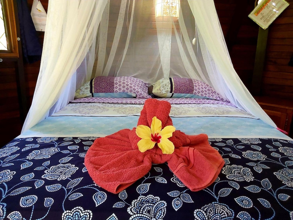 Bungalow style rooms nested in a garden, with chairs and hammock outside, make it a perfect place to relax and enjoy the many birds, occasional monkeys and nature.