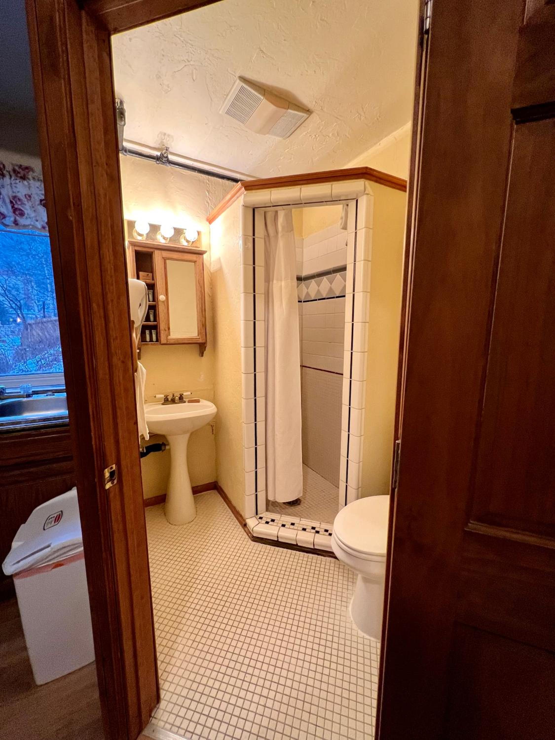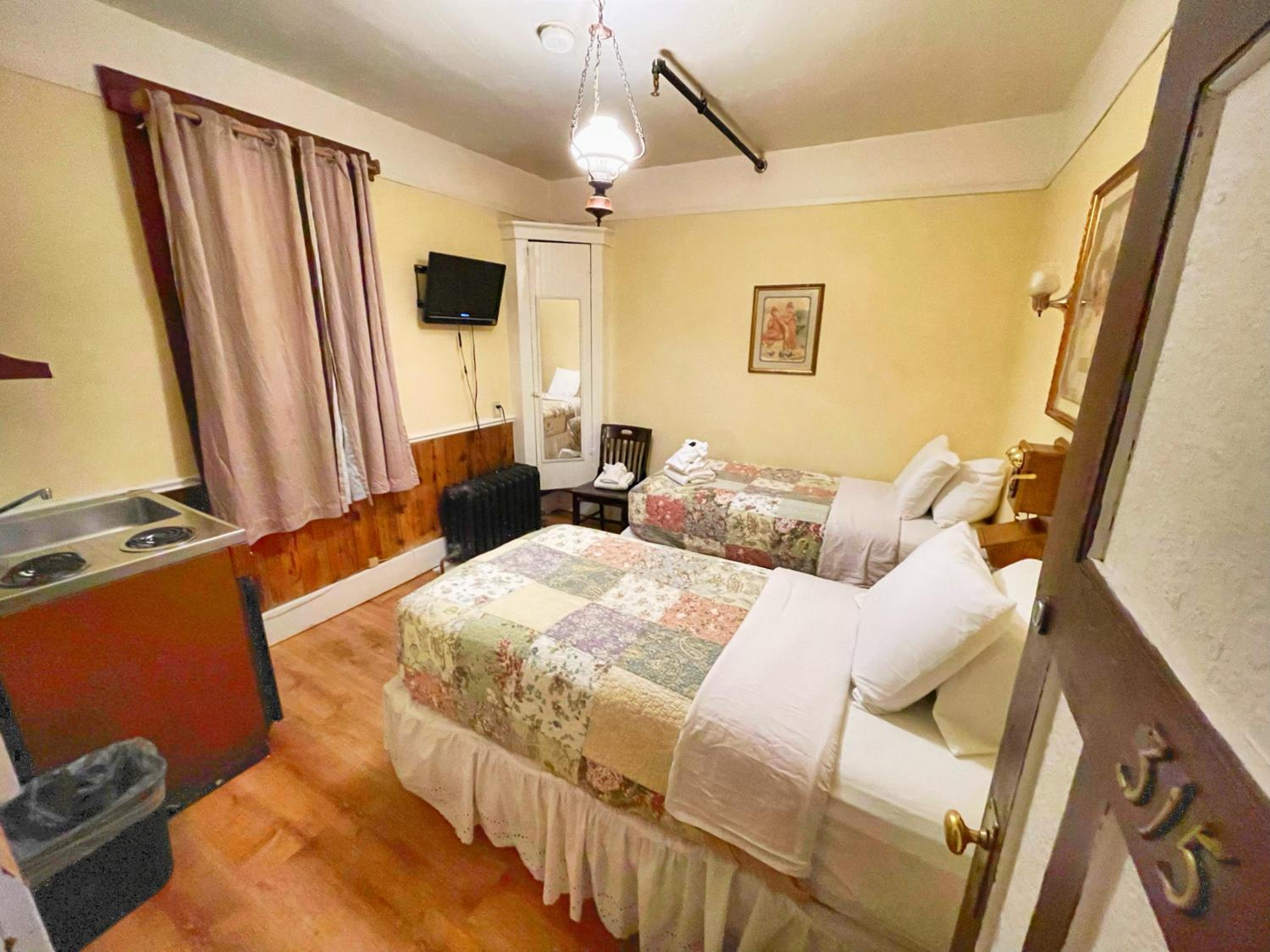 Super location, great value. Historic building with neat old photos in the hallways. Nice to have been able to get a room with a fridge and private bath.
