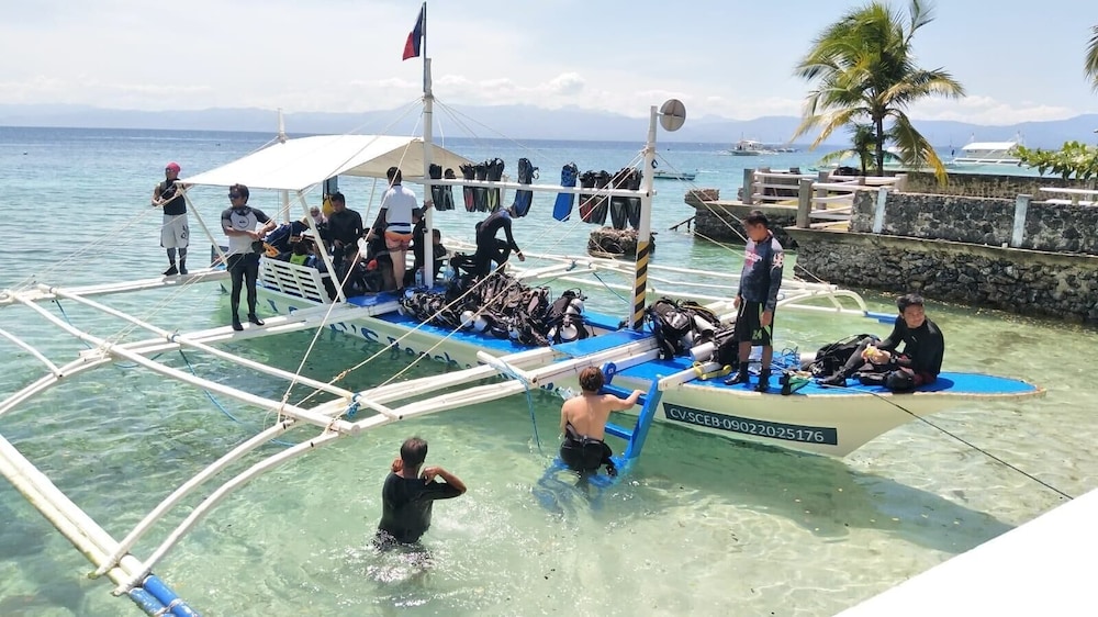 I really hesitate to give these guys a great review because I might not be able to get another reservation there when they get too popular!! This place is great, perfect if you want an out of the way, relaxing, calm, peaceful place to spend a week or two. Very romantic, very simple. Staff is great. You can walk right down on the beach and enjoy some really good snorkeling or take one of the dive trips! There is a dive shop right on the property and the staff there is very helpful also. The food is very good... not fancy but very good. There is a near by town, Moalboal, and you can get essentials there but it is not a place where you will want to hang out a lot... there are no eating places there unless you feel like risking your health eating street food.... DON"T!! Just stay at the resort and relax... if you are looking for a luxury 5 star resort witha mile of sandy beach, this is not it... this is a great atmosphere dive resort: a romantic, lush, green place to ditch the world for a couple of weeks. They have wifi in case you really need to connect! I suggest taking the 4 hour bus ride out of Cebu. You will see a lot about the Philippines. Not a luxury ride but you if you came here for luxury you made a mistake... this is life in an amazing part of the world. The resort is comfortable and intimate. If you want a place to escape, relax, dive, and recharge it is worth traveling to from all over the world.... and people do!!! May of their guests are from Europe.