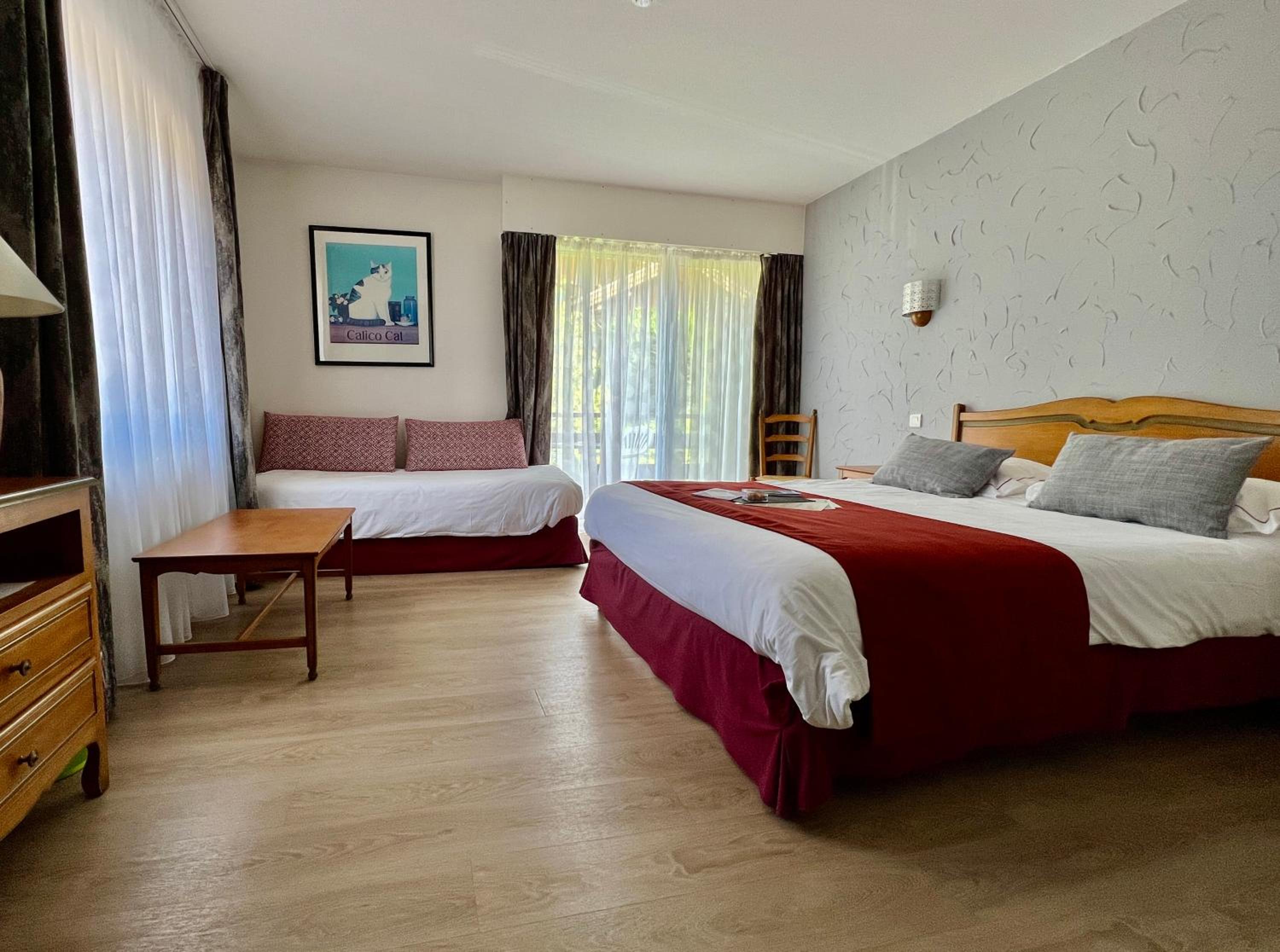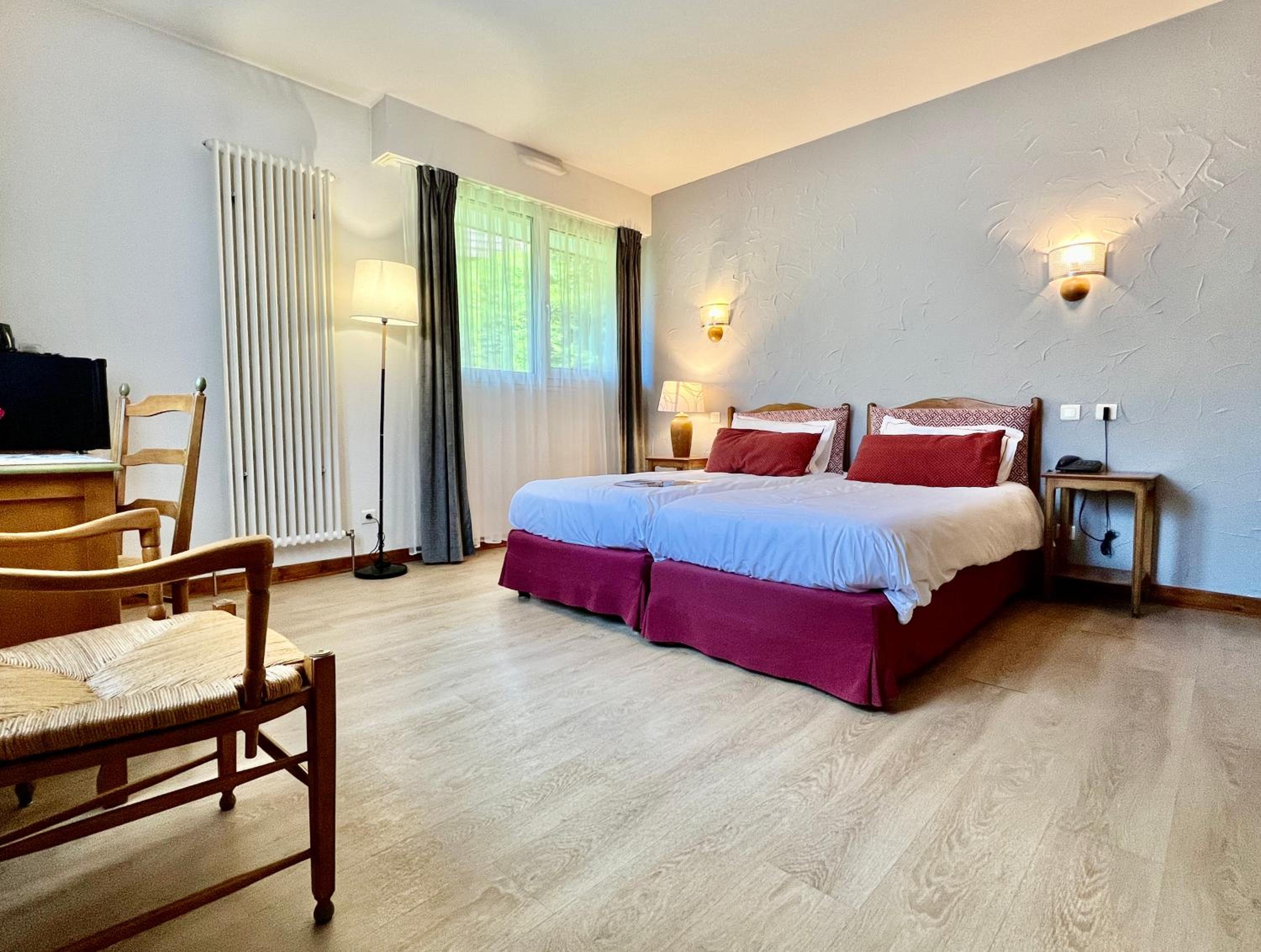 Experience the comfort of our 18 spacious rooms and suites, along with 3 fully equipped chalets, all nestled in a natural park. Each room features a private bathroom and a television for your relaxation.
