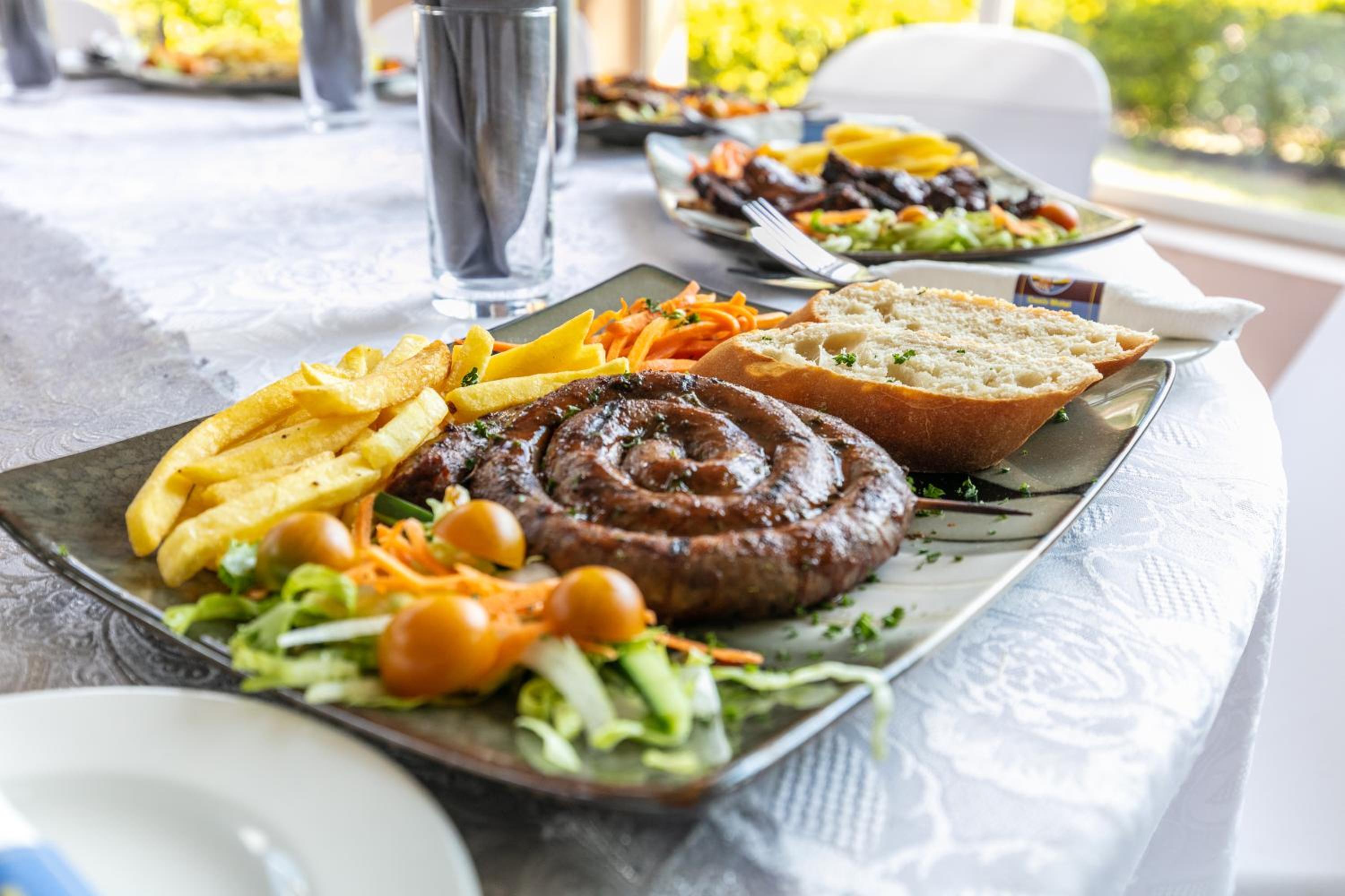 Enjoy a refreshing dip in our outdoor pool or indulge in delicious meals at our on-site restaurant.