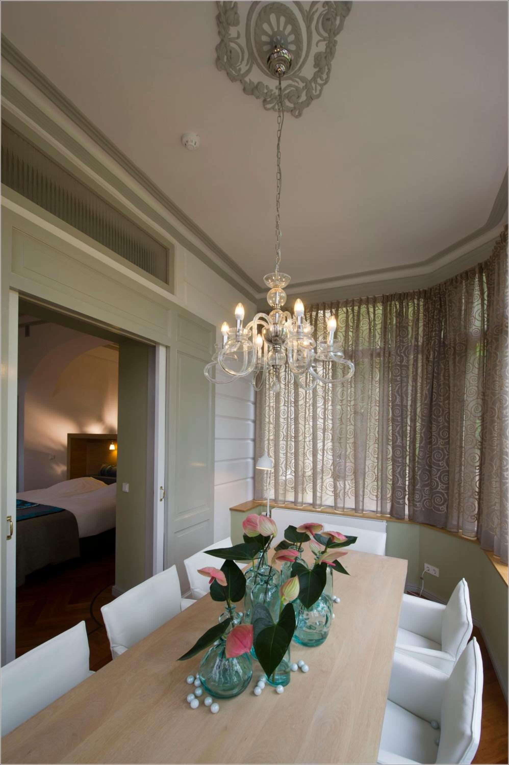 Das Zimmer war großzügig geschnitten und verfügte über ein sehr großes Badezimmer. Die hohen Decken mit Stuckverzierungen sowie die großen Fenster mit Blick über die Stadt verleihen dem Raum grundsätzlich viel Charme. Die individuelle Einrichtung hebt sich vom üblichen Hotelstandard ab und spricht insbesondere Gäste an, die bewusst das Außergewöhnliche suchen. Zusätzlich sorgte die geschmackvolle weihnachtliche Dekoration im Flur für eine angenehme, stimmungsvolle Atmosphäre.