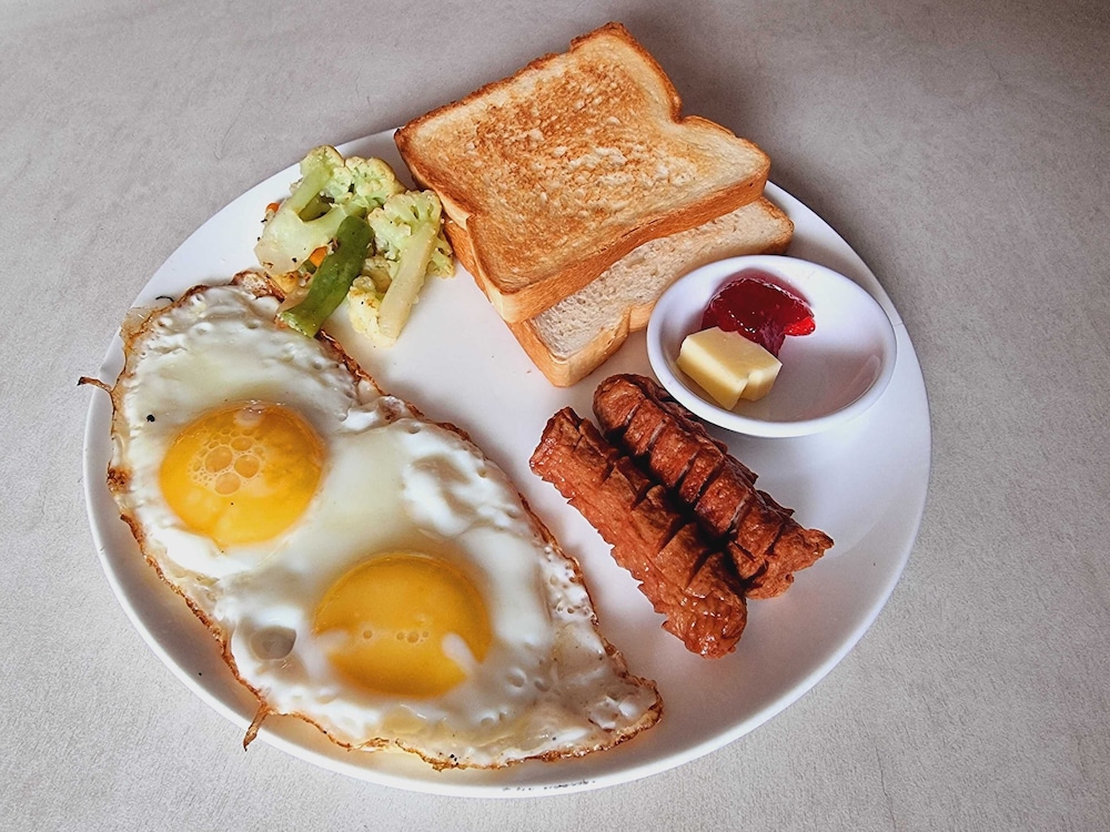 Cons: the bathroom neeed to be thoroughly bleached and deconned- bring your own shower shoes; while the bed was comfortable, I slept on top of my silk sheet liner because the sheets, etc. were scary; the aircon was useless-it barely blew out tepid air and you needed the fan, the room was grimy and there were three smashed, dead insects on the wall. Your bottled water was not refilled each day.