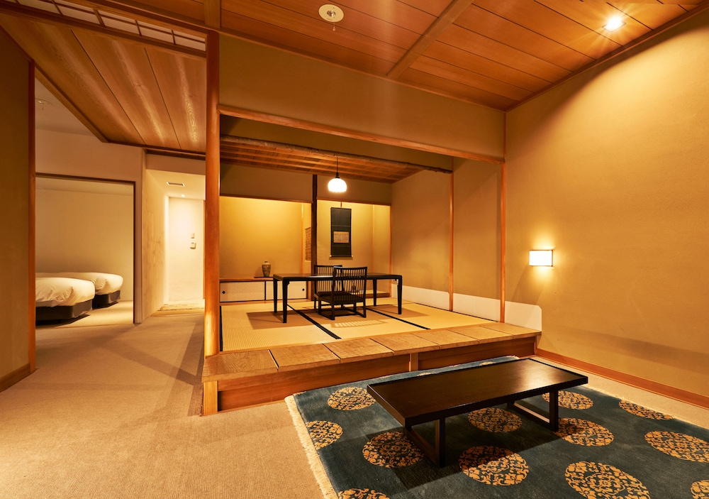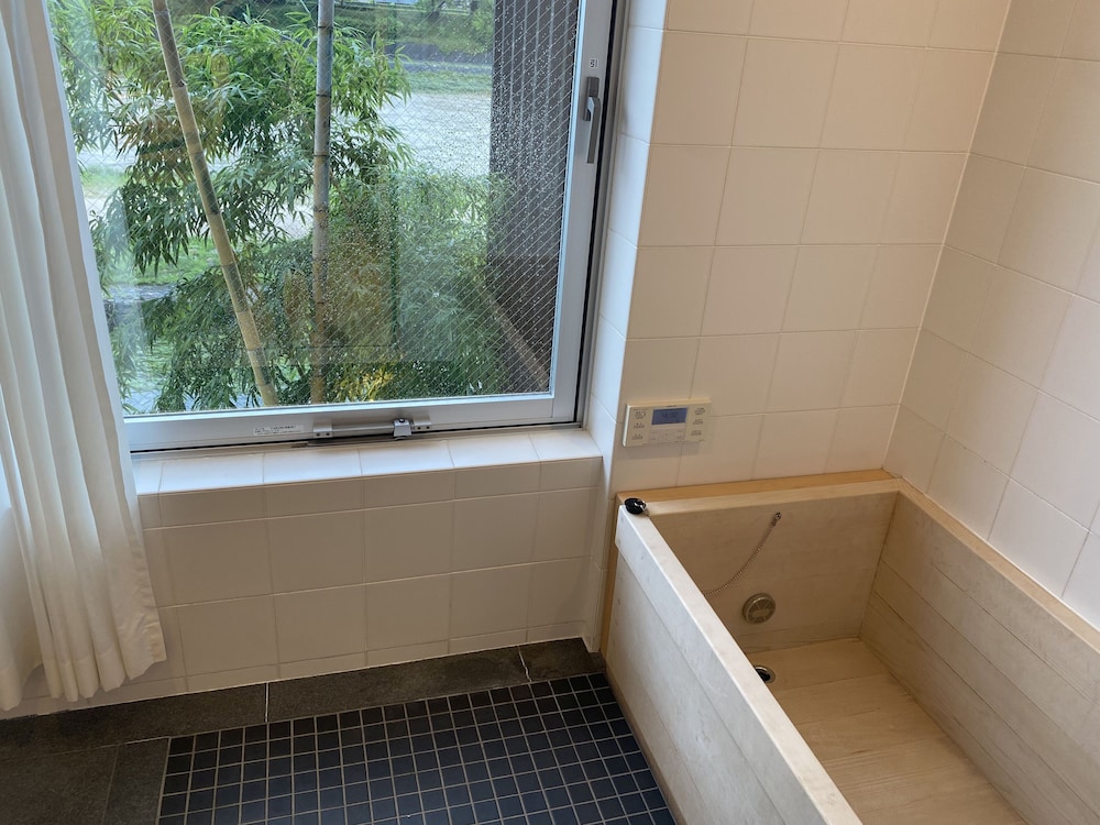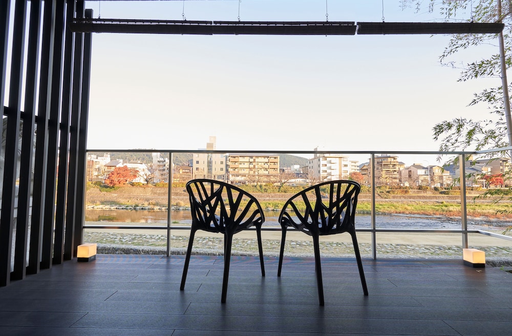 Amazing luxury hotel in the best possible location south of Pontocho and across the bridge from Gion. A huge room with a terrace and a sparkling large bathroom with a shower, wooden tub, and river views. Fridge stocked with beer and soft drinks and a washer-dryer for longer stays. None of this comes cheap but go and enjoy.