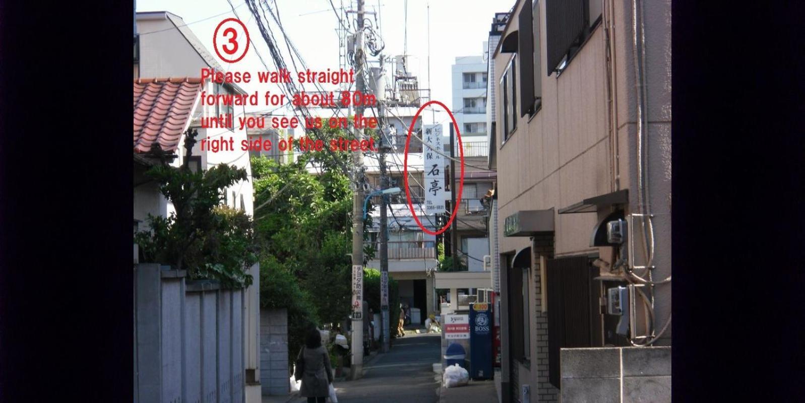 - At the exit of the station, turn left into Okubo-dori street, and walk for about 328 feet.