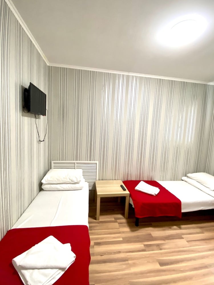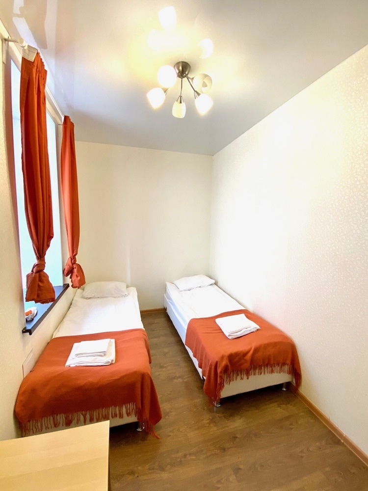 Фото не верьте ни номера ни душа. Он такой единственный и конечно же занят. Изначально заселили в неубранный номер с огромным мешком мусора, потом судорожна ища чистый номер, заселили в трехместный. Администратора встретите,курящим на корточках у входа. Если пойдете смотреть на развод мостов ночью, встретитесь с пьяными постояльцами) В общем дешево сердито)))но расположение хорошее