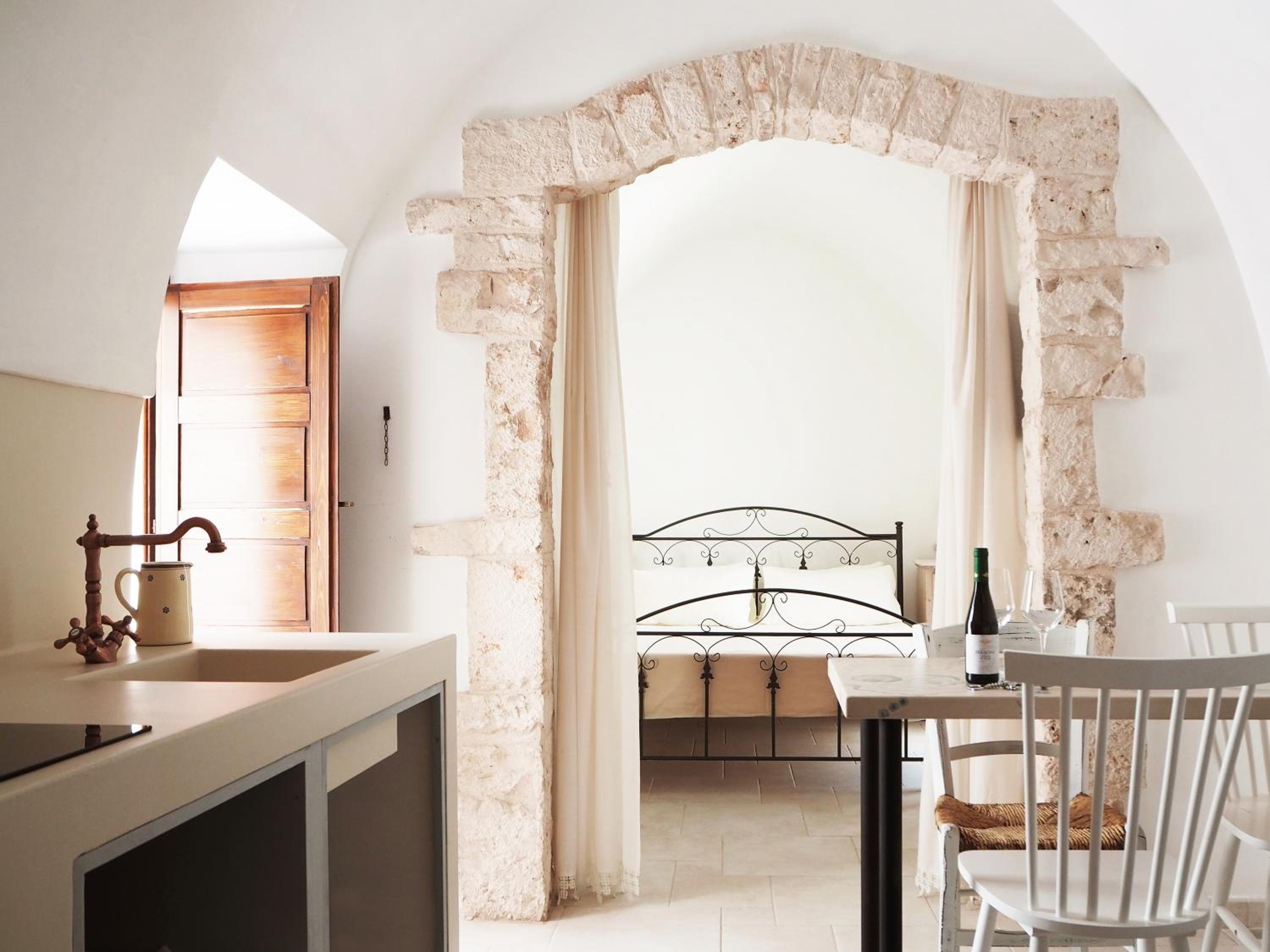 La struttura originale della casa, un edificio tipico del centro di Locorotondo, è stata conservata con estrema cura e amore; tutto ciò che è stato aggiunto come arredamento e servizi, per rendere l'alloggio confortevole e moderno, armonizza con l'assetto storico e anzi esalta materiali e forme della tradizione. Ne deriva un'atmosfera di immersione nel luogo di cui si è ospiti, e allo stesso tempo ci si sente accarezzati da un'ospitalità squisita, in uno spazio reso veramente confortevole.