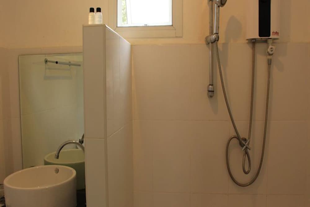 只有老闆娘會講一點點英文,床單上還有細沙,枕頭套跟被單泛黃,冷氣壓縮機在陽台上,非常大聲,不好入睡,但有冷,洗手台的水是黃色的,大概要留個一分鐘才會透明一點,浴室蓮蓬頭的水會熱,但有點小,一個人洗完要等15分鐘才會再有水,早餐時間到的時候要等待老闆娘出現,如果趕時間可能要提早跟他說吃早餐的時間,缺點就這樣了,優點有兩個,離白沙灣超近和價格便宜,有預算考量又想要離白沙灣近,就選這吧!若想有個度假好心情,象島上還有很多沙灘和飯店!