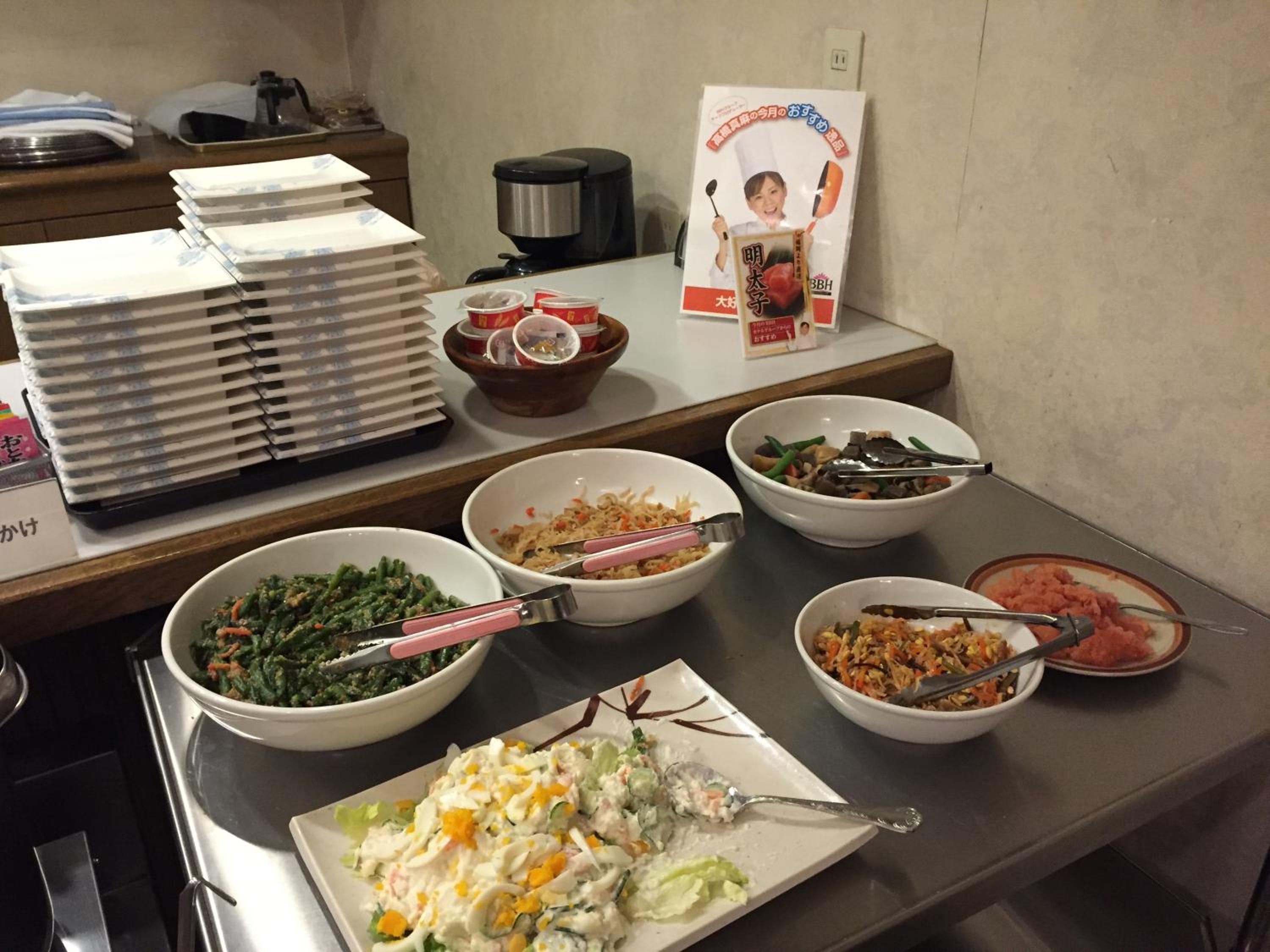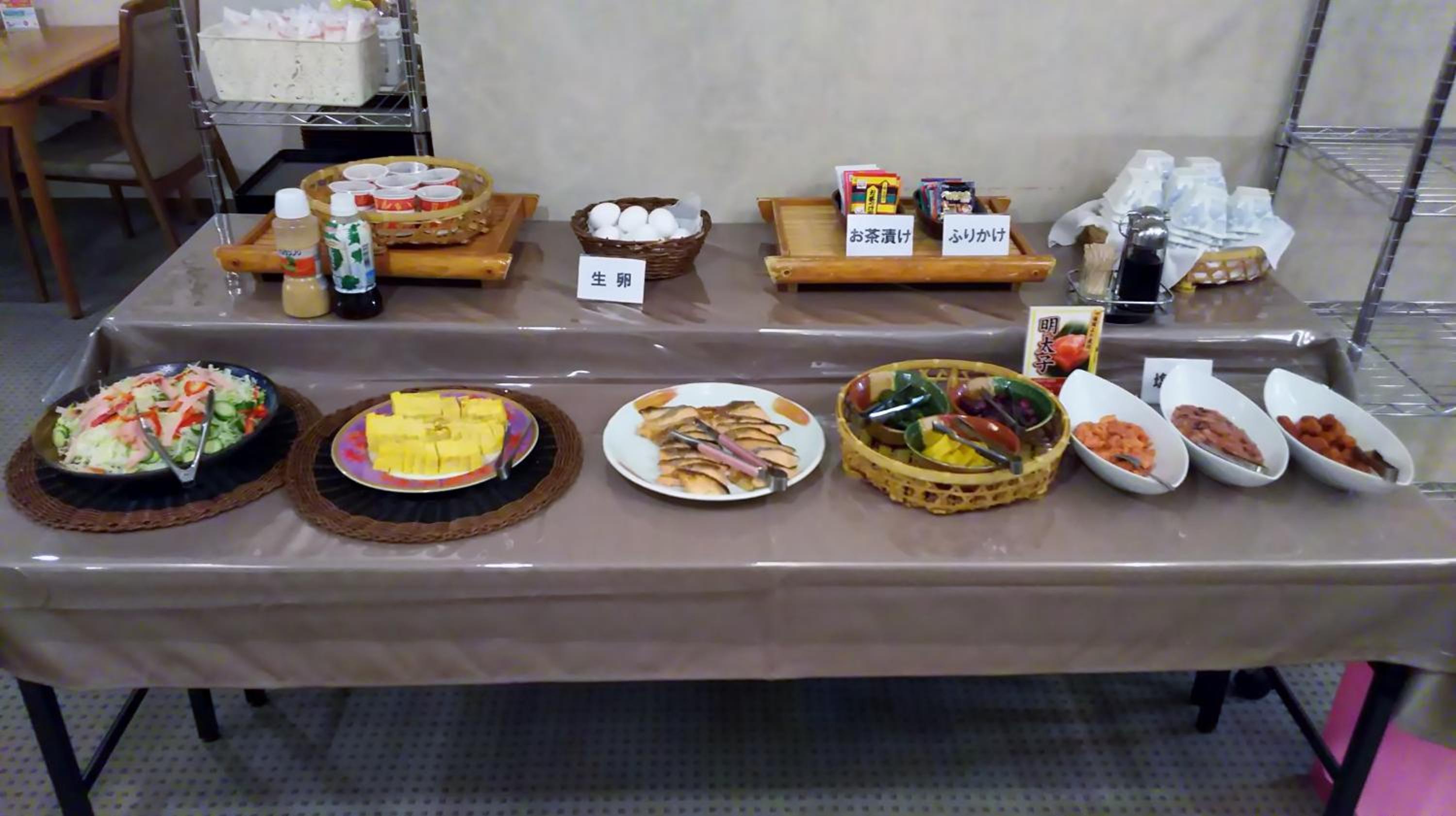 朝食が種類が多くてお腹いっぱい食べれた。夕食チケットと夜中のお茶漬けサービスも良かった。