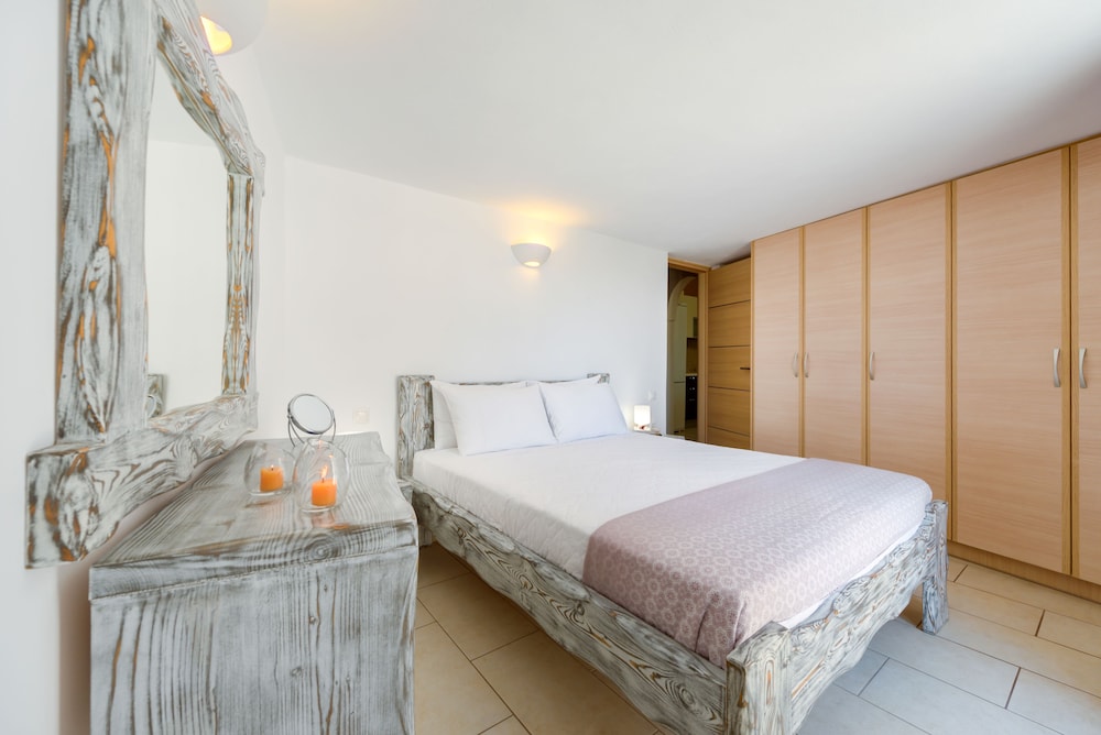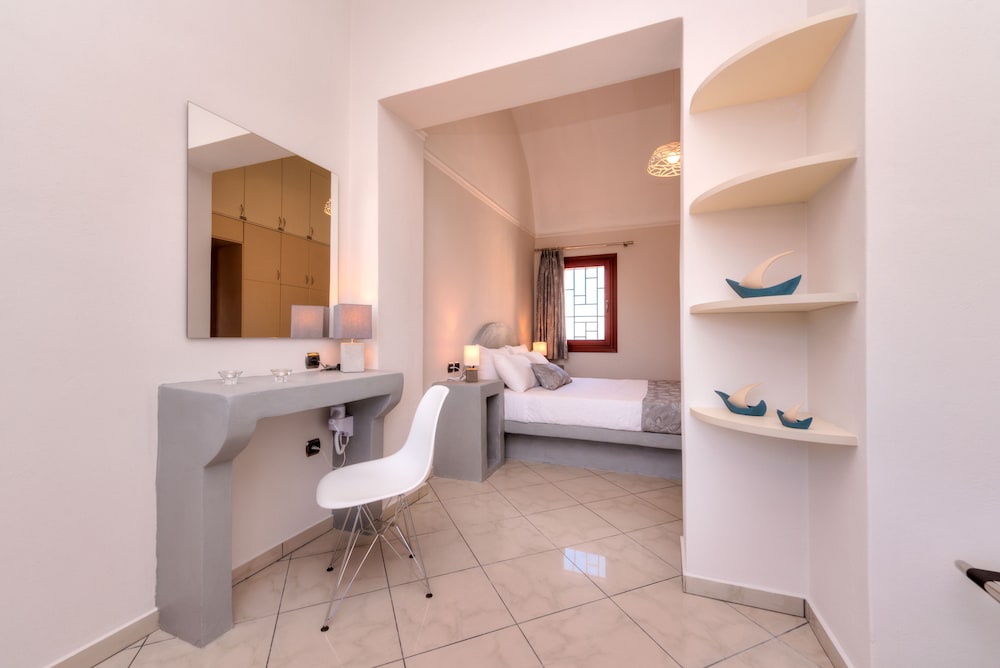 Very nice 2-rooms appartment with a big terrace and a beautiful view of the caldera. Not far from the Caldera beach, the famous Red beach and Black beach (we have rented a car to drive to the beaches). Good tavernas nearby. The hosts did everything for our comfort and we felt us at home. Dimitra was very helpful with the information and tickets to the center of the volcano. Breakfast was included, we got juice, milk, good bread, jam, butter, honey, jogurt, cheese, ham and home fresh eggs. We are very thankful for the beautiful vacation we had at this place!