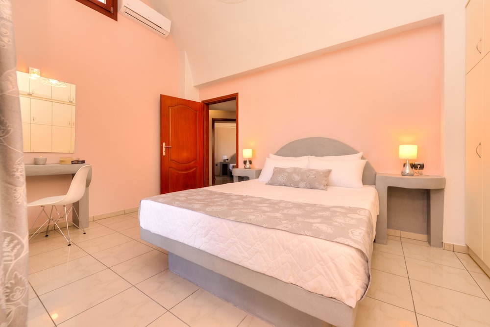 We stayed here for just one night because our plane got in late & our airbnb was already booked for that first night we were in. It was one of the best decisions we made on our vacation. Dimitras was the NICEST person we have ever encountered. She met us late at night after our plane was delayed. She was happy & friendly & helped us get everything together the next morning. She gave us some local restaurant suggestions & she was spot on. She served us breakfast & helped us figure out how to best navigate the island. Plus, the views from the property are breathtaking.