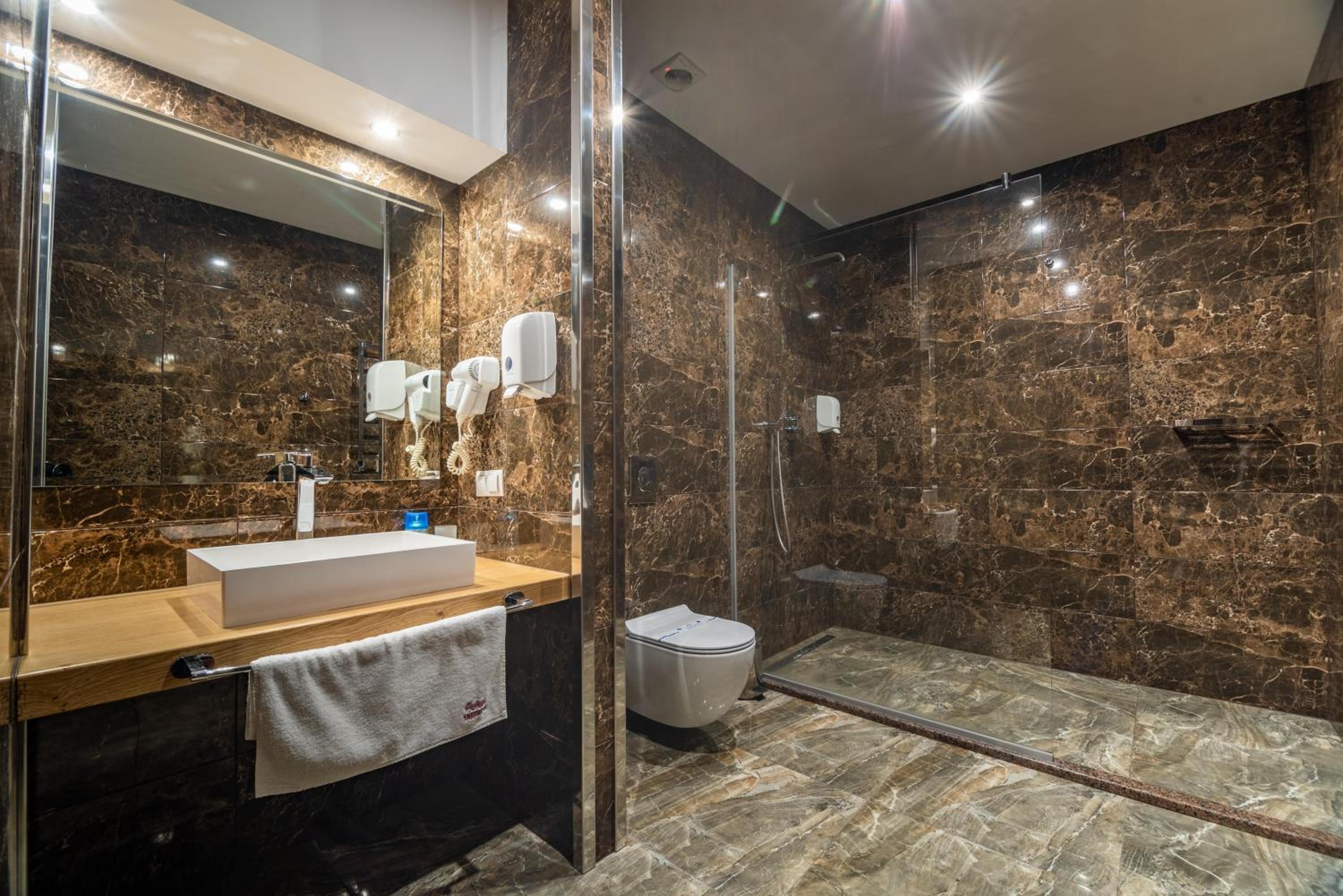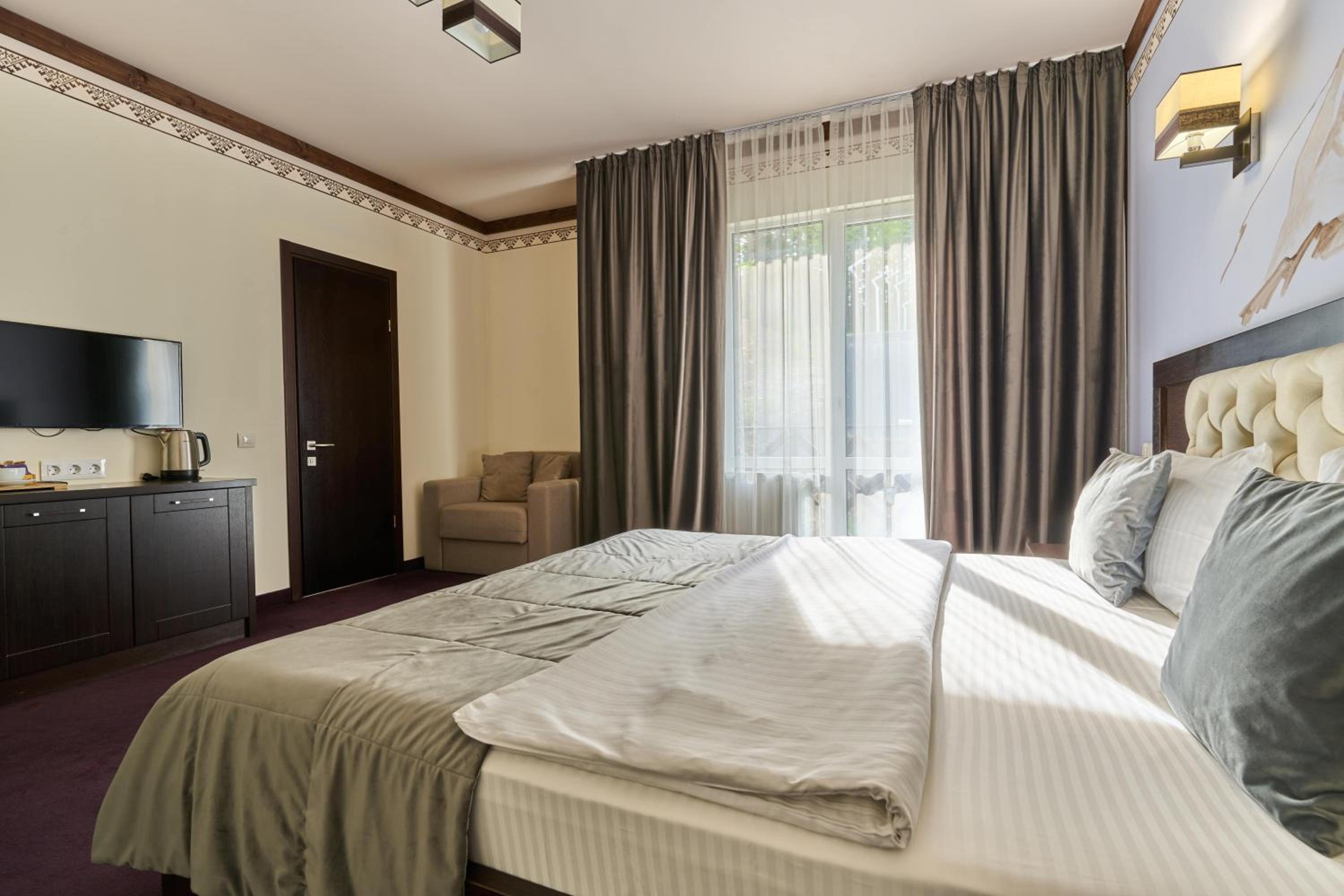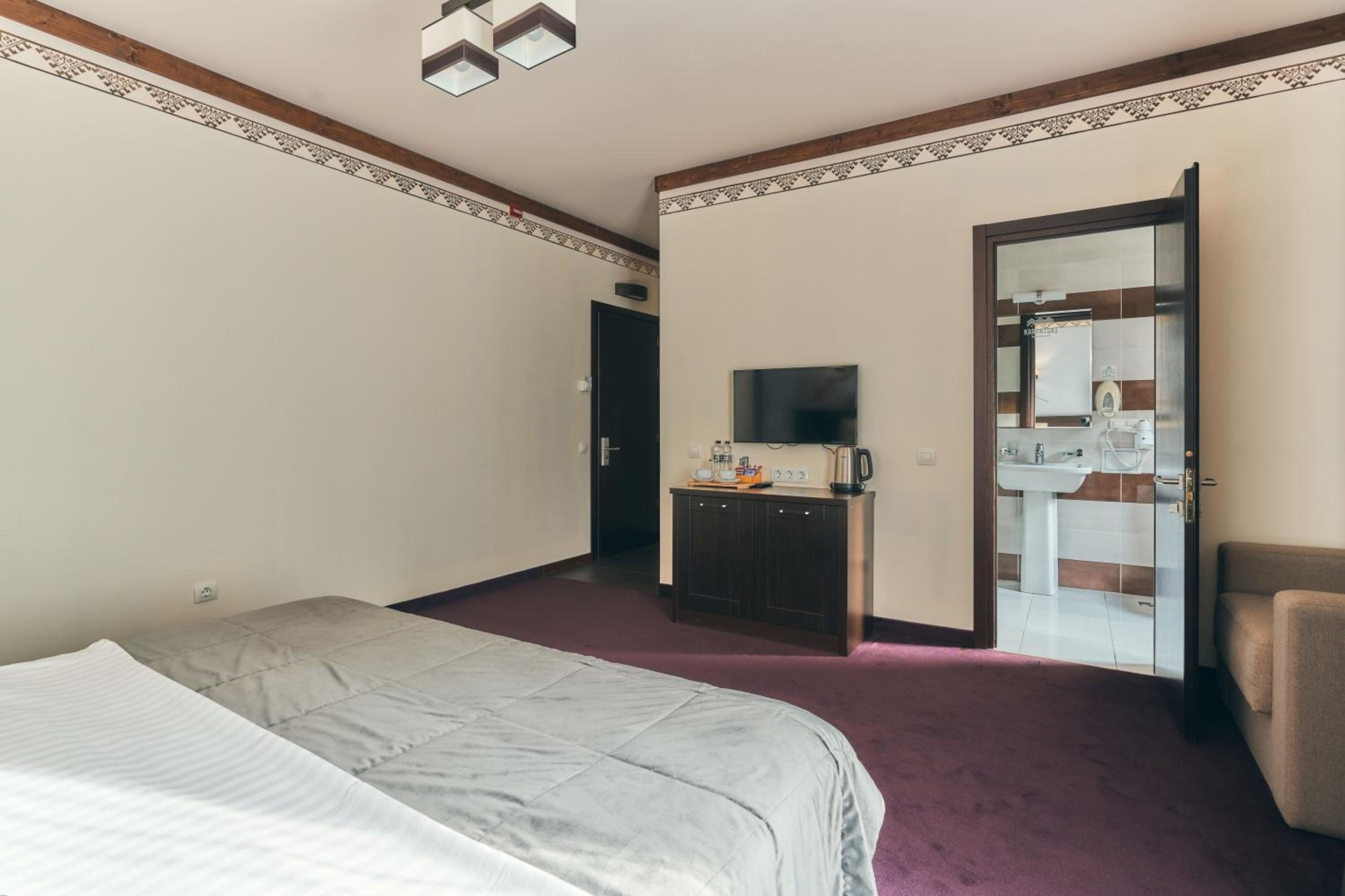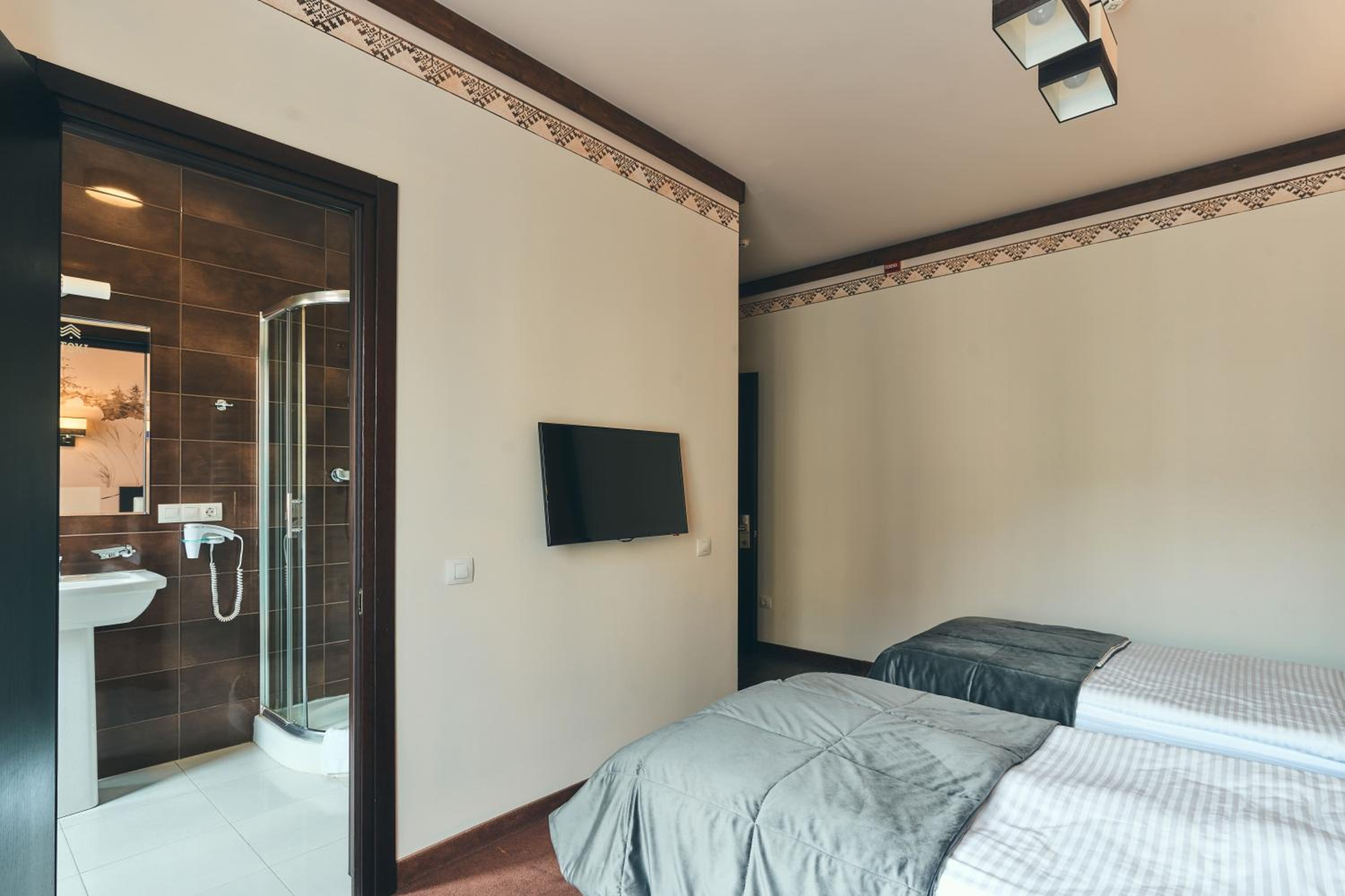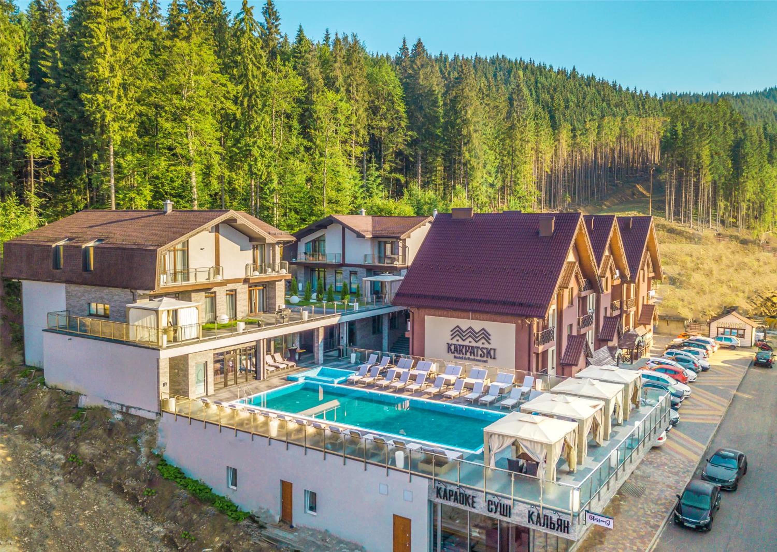 Hotel Karpatskiy boasts a top-of-the-line spa complex offering various saunas, a Roman steam room, and rejuvenating spa treatments. Guests can unwind in the sauna or pamper themselves with a relaxing massage.