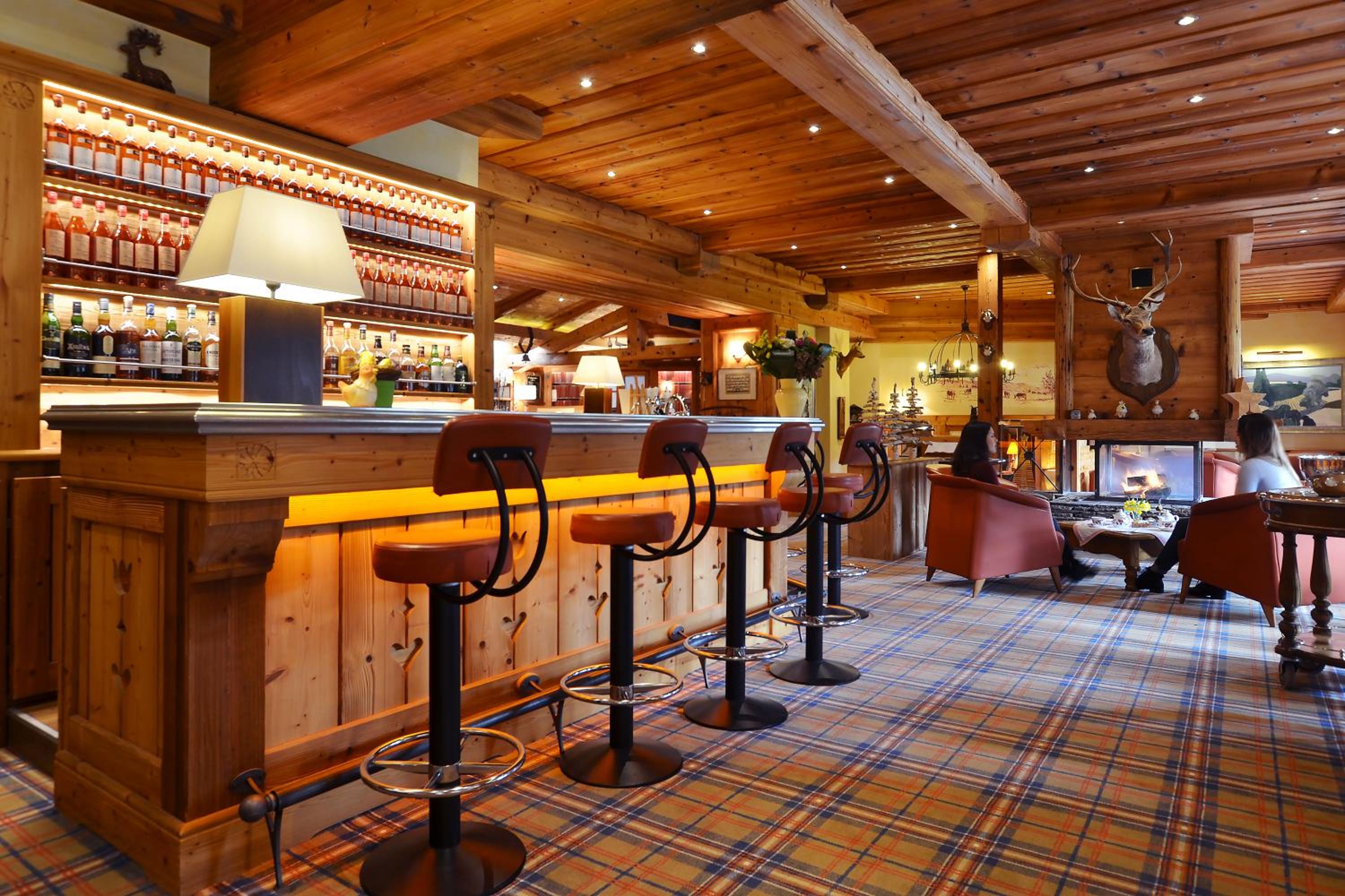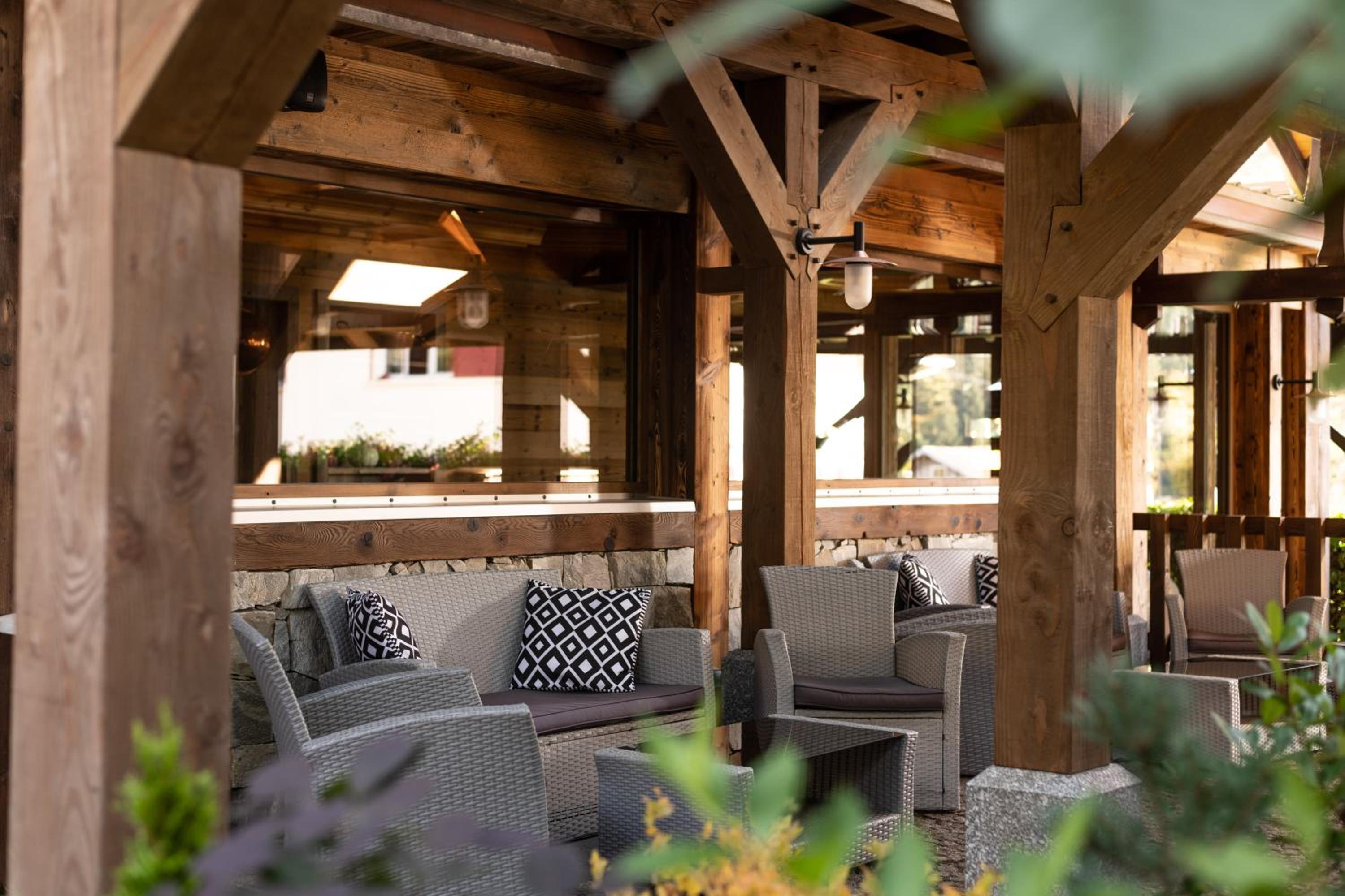 Cozy Ambiance: Unwind in charming chalet-style rooms with wooden décor and a private balcony, then relax in the bar-lounge with a fireplace.
