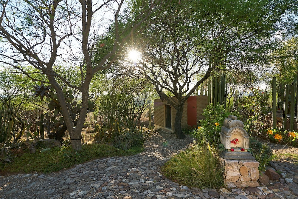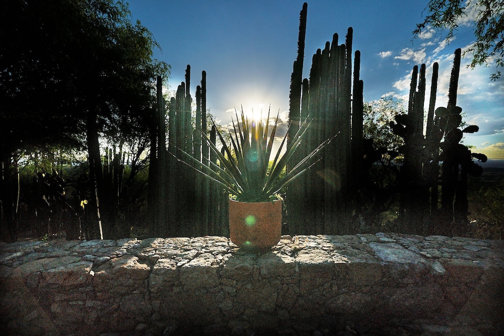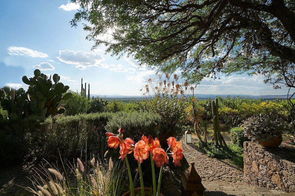 La Sagrada Beotique is a stay of repose and beauty sculpted by its numerous gardens, meandering your walks the cactus' organic forms among the shades of the jacaranda and mesquite trees. While during the day you can miss the view of the grand plateau that extends at your feet below, at night it shimmers with light some parts of the magical city of San Miguel de Allende.