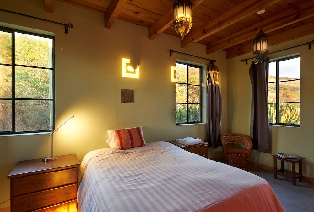 Pros-We loved shane our host and the owner, The property is beautiful and tranquil perfect for someone looking for solitude and has the feel of a remote retreat experience. The hotel will provide breakfast for you at a cost as well as offers plenty of food and drink options. We got in late and Shane was nice enough to cook for us. Rooms are well appointed as it the man house of the hotel. Cons- our drivers got lost trying to find the place. Once you hit the dirt road there is no cell service so it is imperative that you have a printed map or a screen shot of directions. Its tough to get an uber to come pick you up and it takes some planning for a taxi to get there (about 20 min). The shower in the bathroom had very little pressure. Its pretty far out of town. It took about 20-30 minutes to get to the part of town that we needed to be in. All in all a great place to enjoy the nature side of Mexico. You could see so many stars and hear all the sounds of nature but probably not for someone that has pressing matters in the heart of San Miguel.