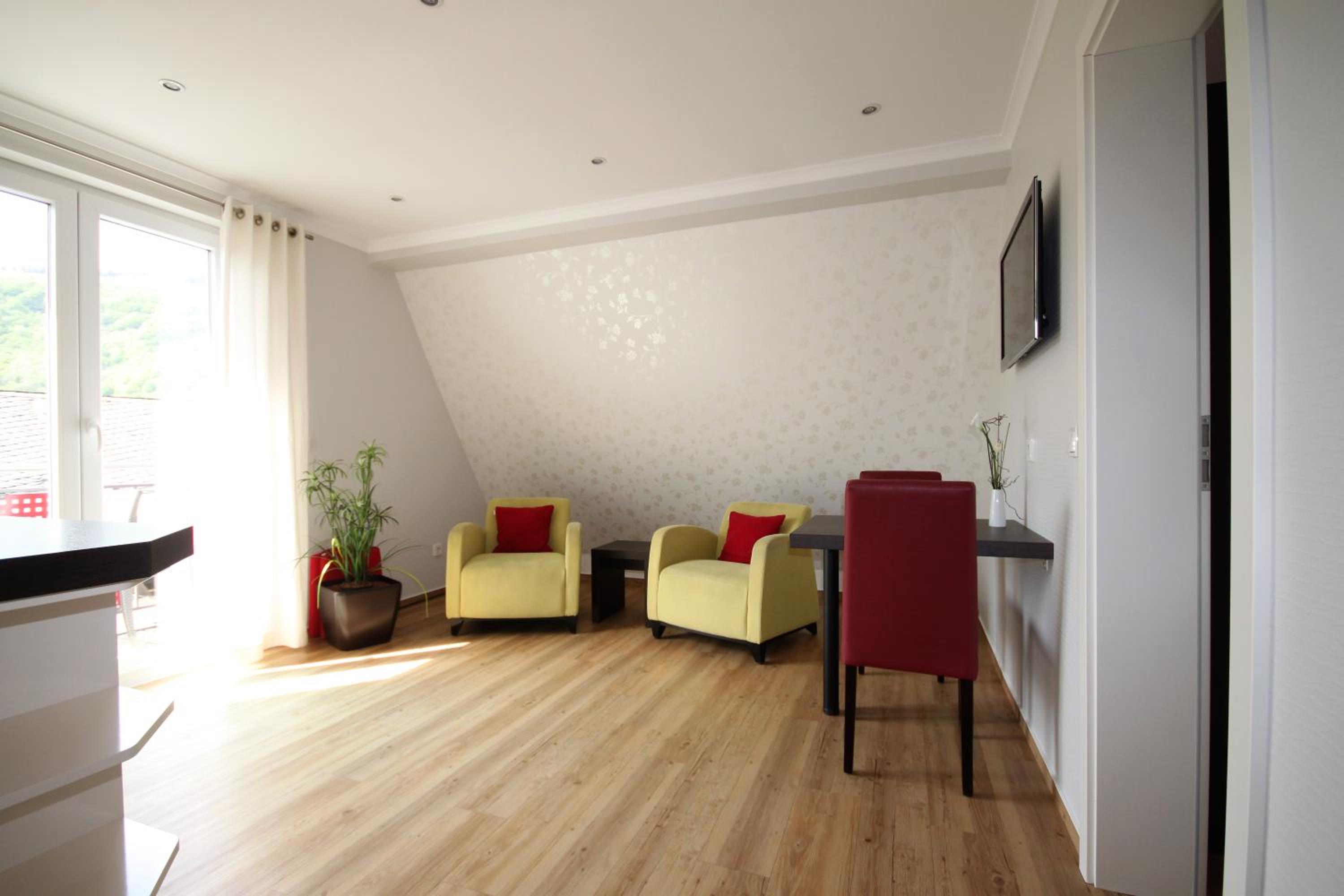 Feriendomizil am Lindenplatz offers modern apartments with balconies and panoramic views of the River Moselle. The bright rooms feature parquet flooring and fully-equipped kitchens, providing a comfortable stay for guests.