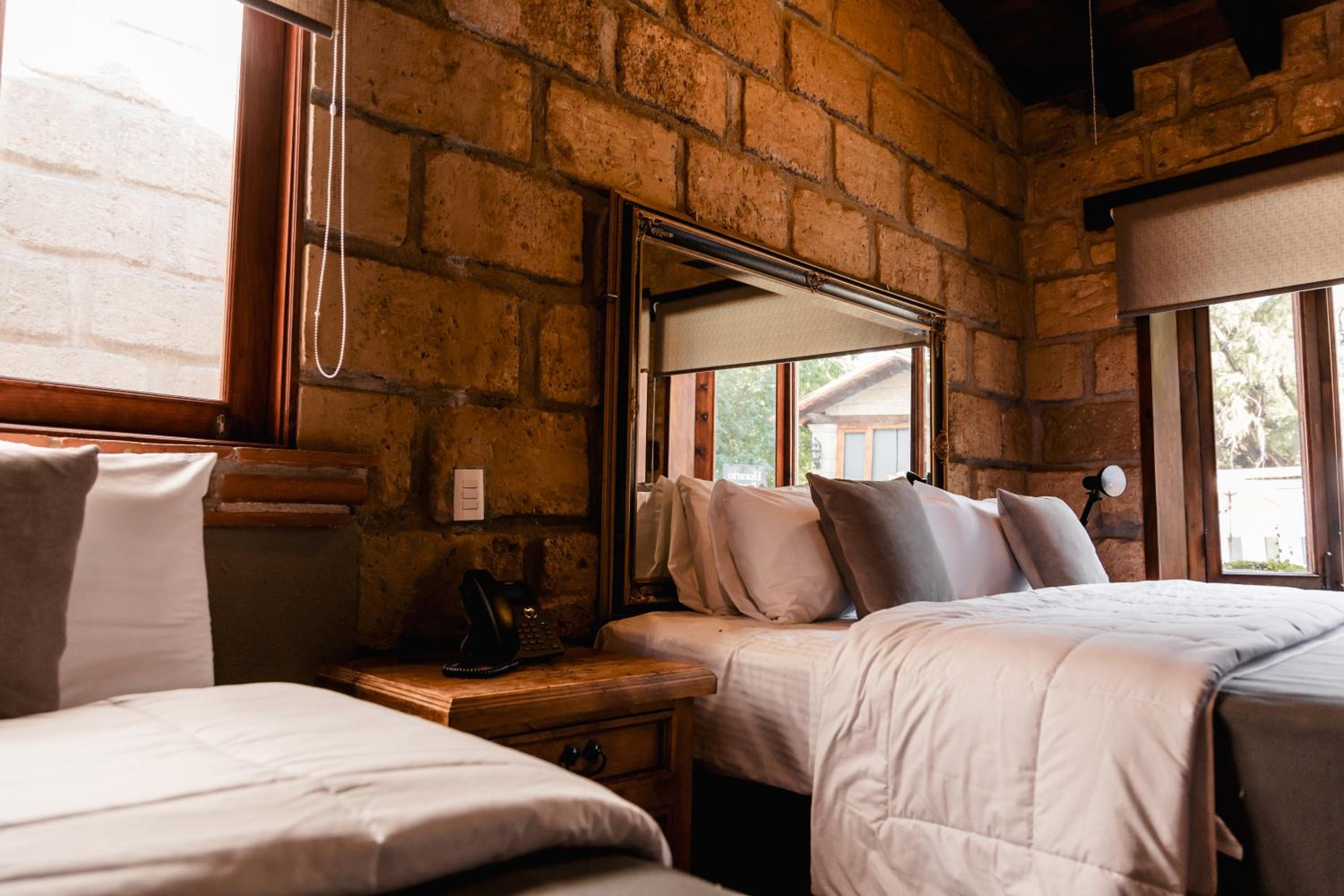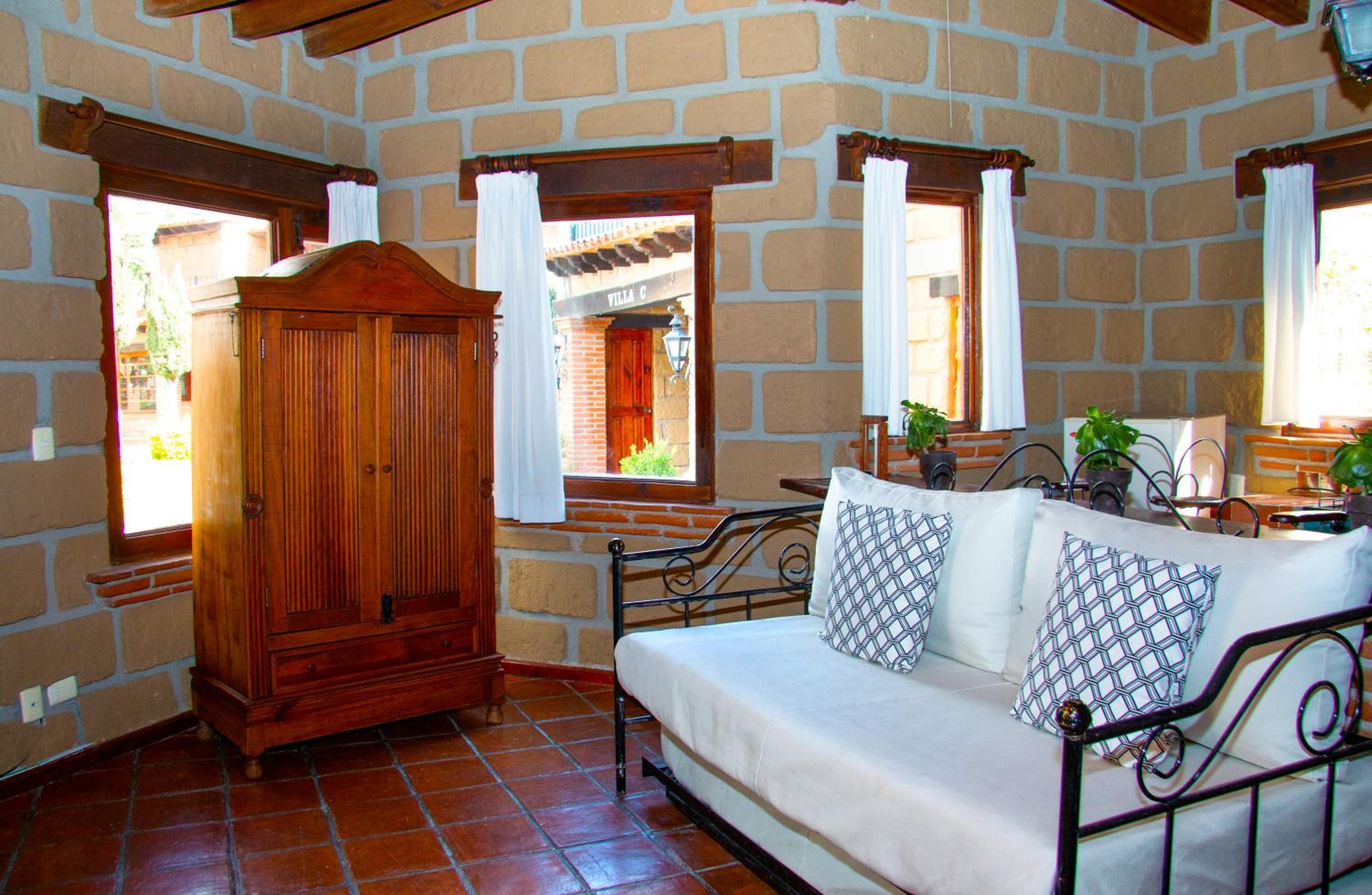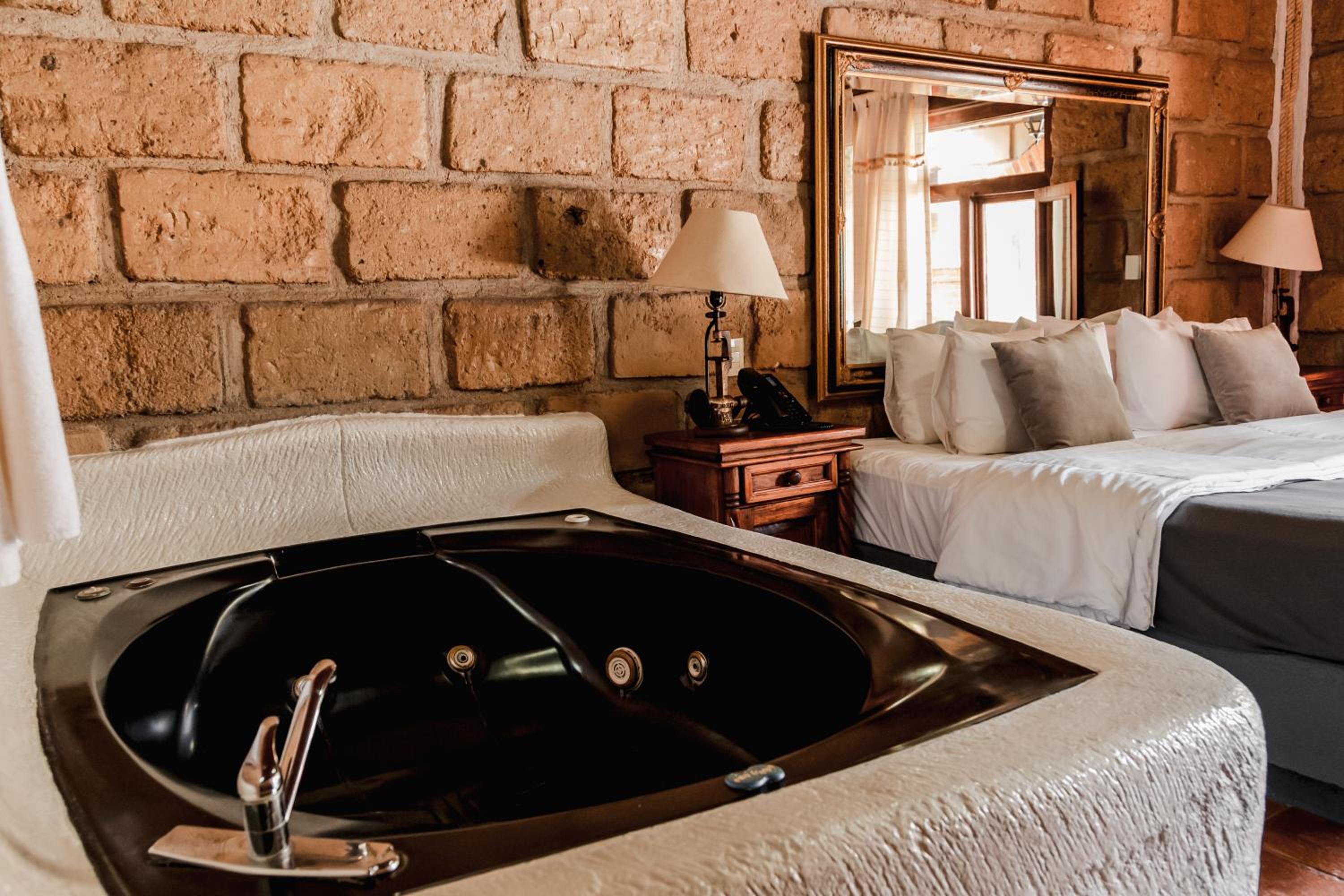 La ubicación es excelente: lo suficientemente cerca del centro para ir caminando y disfrutar de los atractivos principales, pero en una zona tranquila que garantiza descanso total. La alberca y las áreas comunes son perfectas para relajarse en pareja. El estilo del Hotel es rustico de buen gusto con areas verdes lindas.