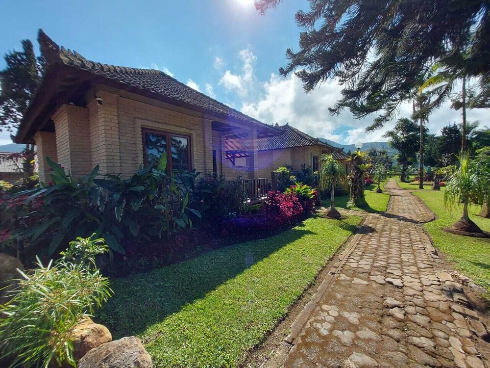 Un lieu magnifique en liaison directe avec le temple Ulu Danu, un jardin superbe, mais les chambres sont décevantes : mal entretenues, équipements veillots, linge avec une odeur d'humidité et même pas la possibilité de se faire un thé. Nous avons eu l'impression de bâtiments laissés à l'abandon, d'ailleurs nous étions à peu près les seuls clients. Quant au restaurant où nous devions aller prendre le petit déjeuner, pas de choix autre que nasigoreng ou miegoreng, et là aussi une impression de restaurant laissé un peu à l'abandon. Quel dommage car le lieu pourrait être génial.