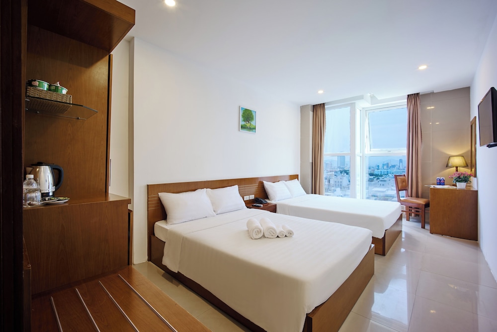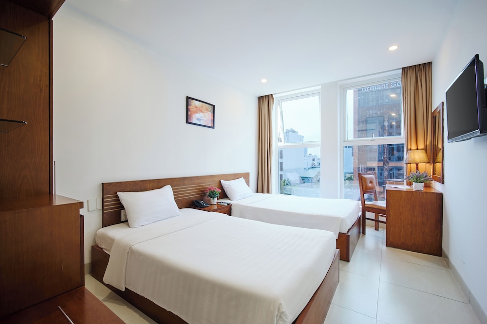 Convenient location, close to beach, close to Dragon bridge, close to many seafood restaurants along the beach. Has motor bike rental from the hotel, bike was a decent model with good condition. Room was clean. Hot water was always available for shower.