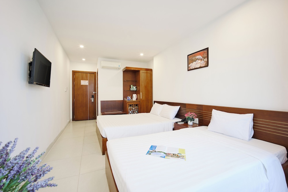 Pros: Almost everything is fine, hotel location is very convenient for me: 4 minutes walk from the sea, near minimarts, seafood restaurants, motorbike rental. Room amenities are also full. Free breakfast is acceptable.