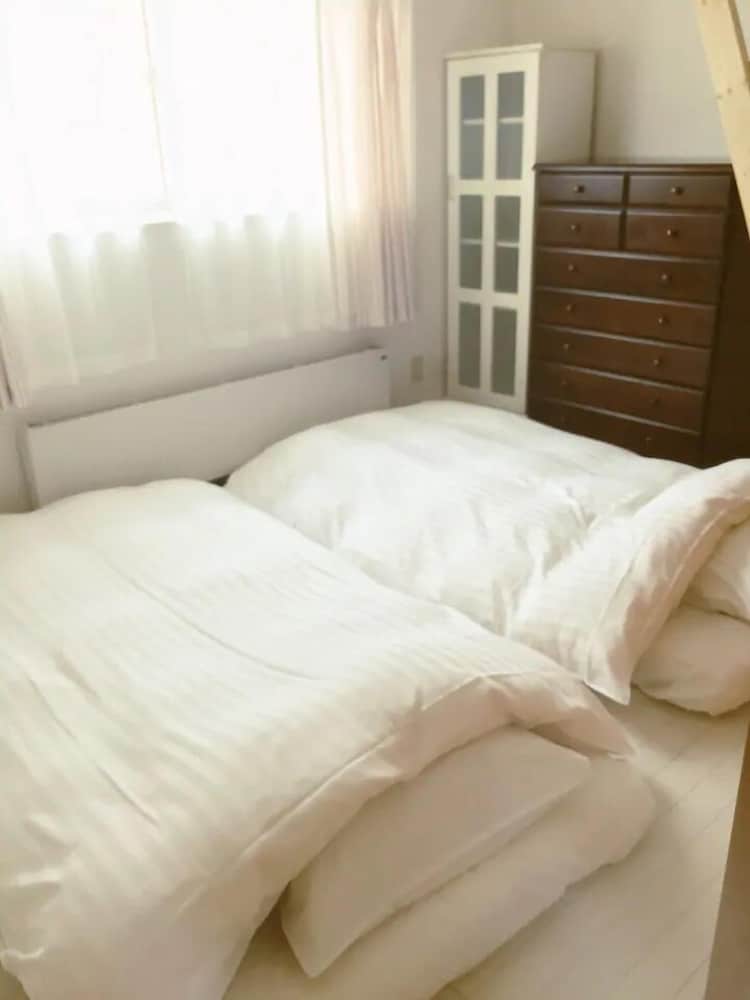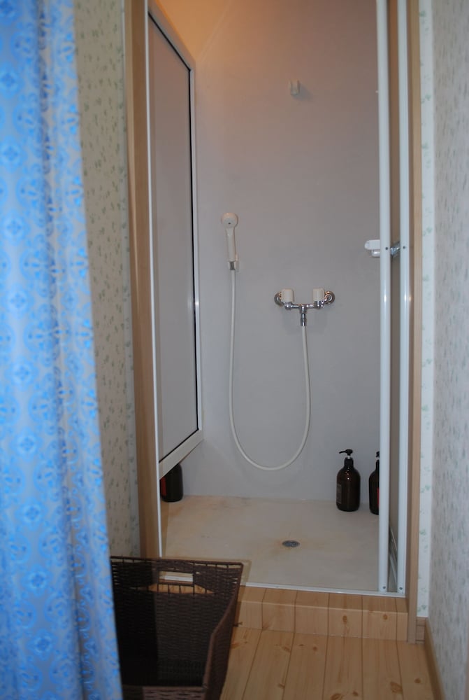 This was such a great stay! We had the 風 cabin and, while it was a bit of a walk from the parking lot, it was very enjoyable. We thoroughly enjoyed the bug warning posted in the bathroom. A large bottle of water was provided in the fridge, the tatami made the room smell great, and the futon was so cozy. Having the large windows in the cabin brought a lot of good lighting and made it feel even cozier. The provided luggage carts helped a bunch in navigating stuff over the narrow, patchwork pathway. It would help to pack on the lighter side so you have less to cart back and forth. When we were returning from a grocery run around sunset, a couple of foxes crossed our path! Shirogane Blue Pond is a short 15-20 minute drive so you can totally beat the crowds in the morning, too. Just remember to stock up on food supplies before you get here!