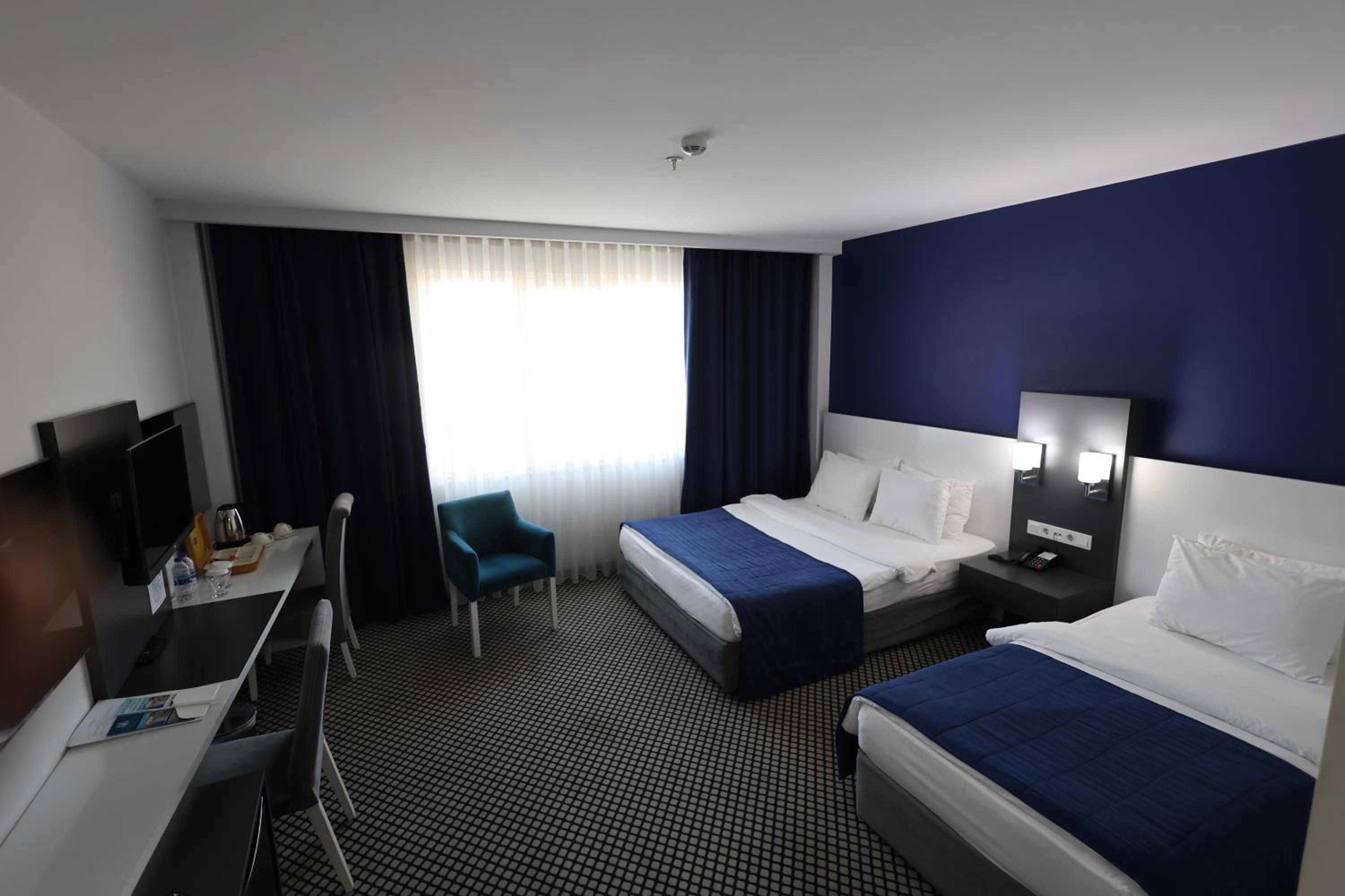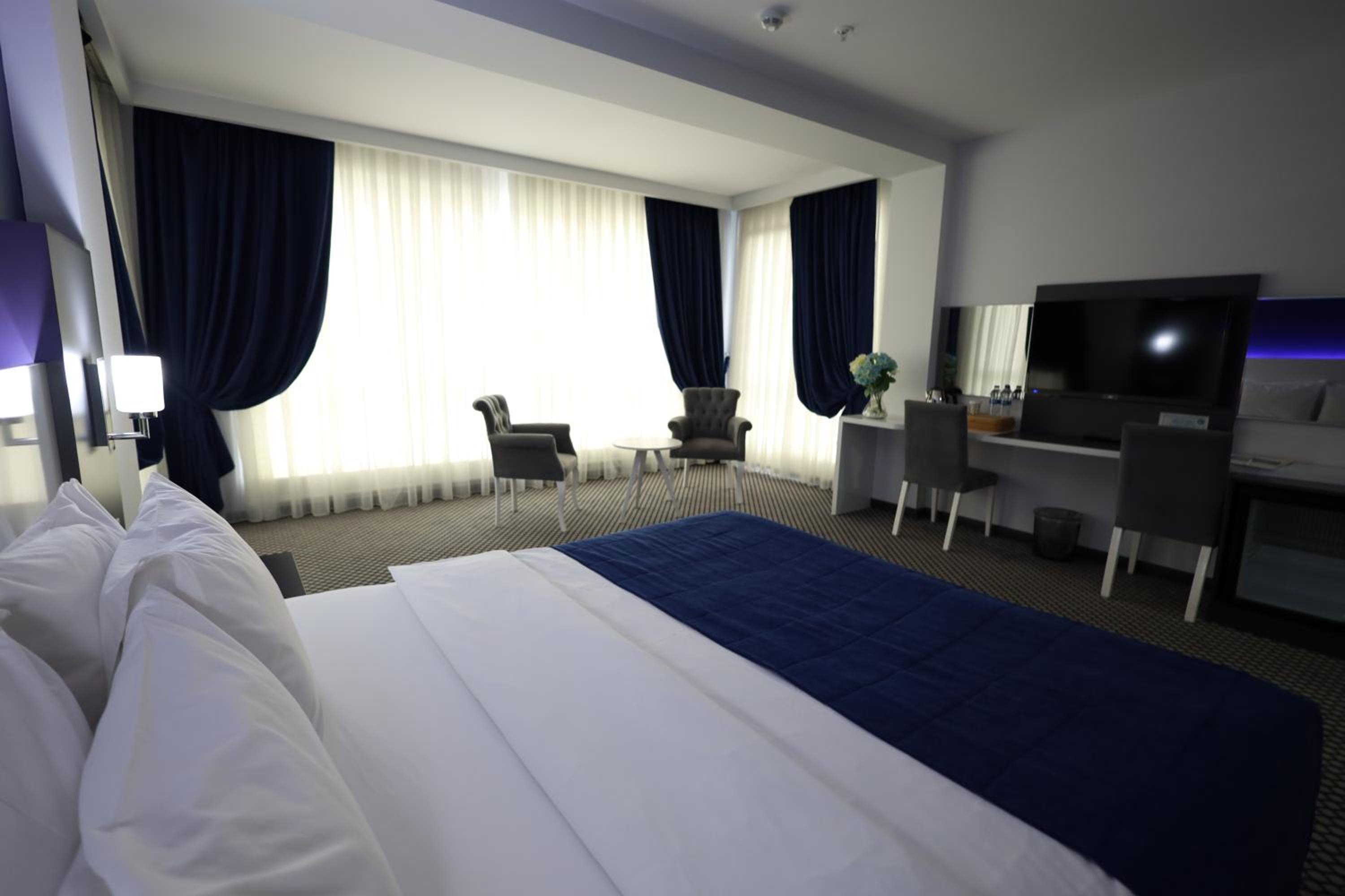 Cavit Duvan Prestige Hotel, centrally located in Edirne, offers a sophisticated stay just 1.6 km from Selimiye Mosque. Each air-conditioned room is elegantly furnished with modern amenities including a flat-screen TV, minibar, and kettle. Some rooms boast a cozy seating area for relaxation. The private bathrooms are stocked with complimentary toiletries and plush slippers.