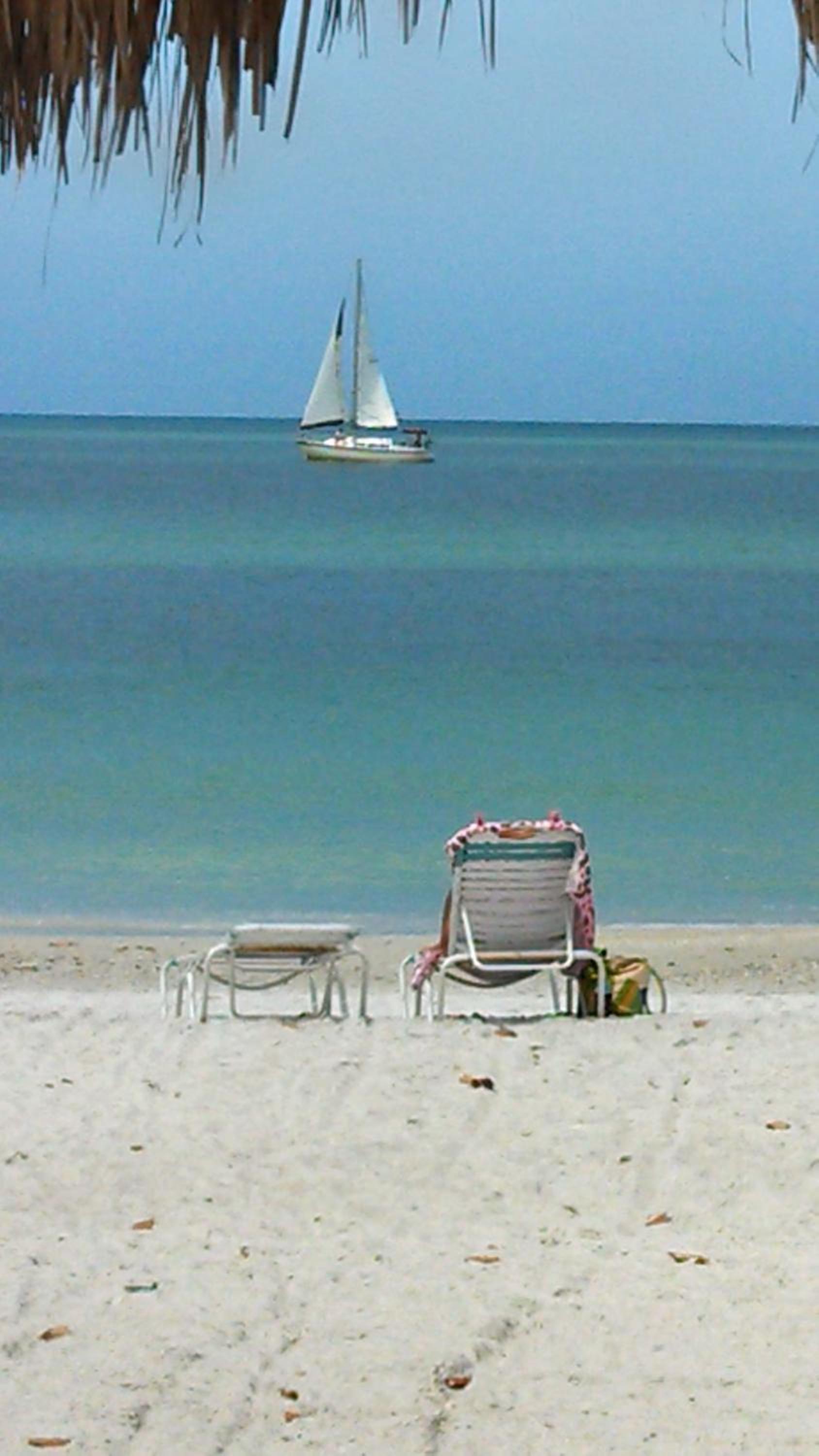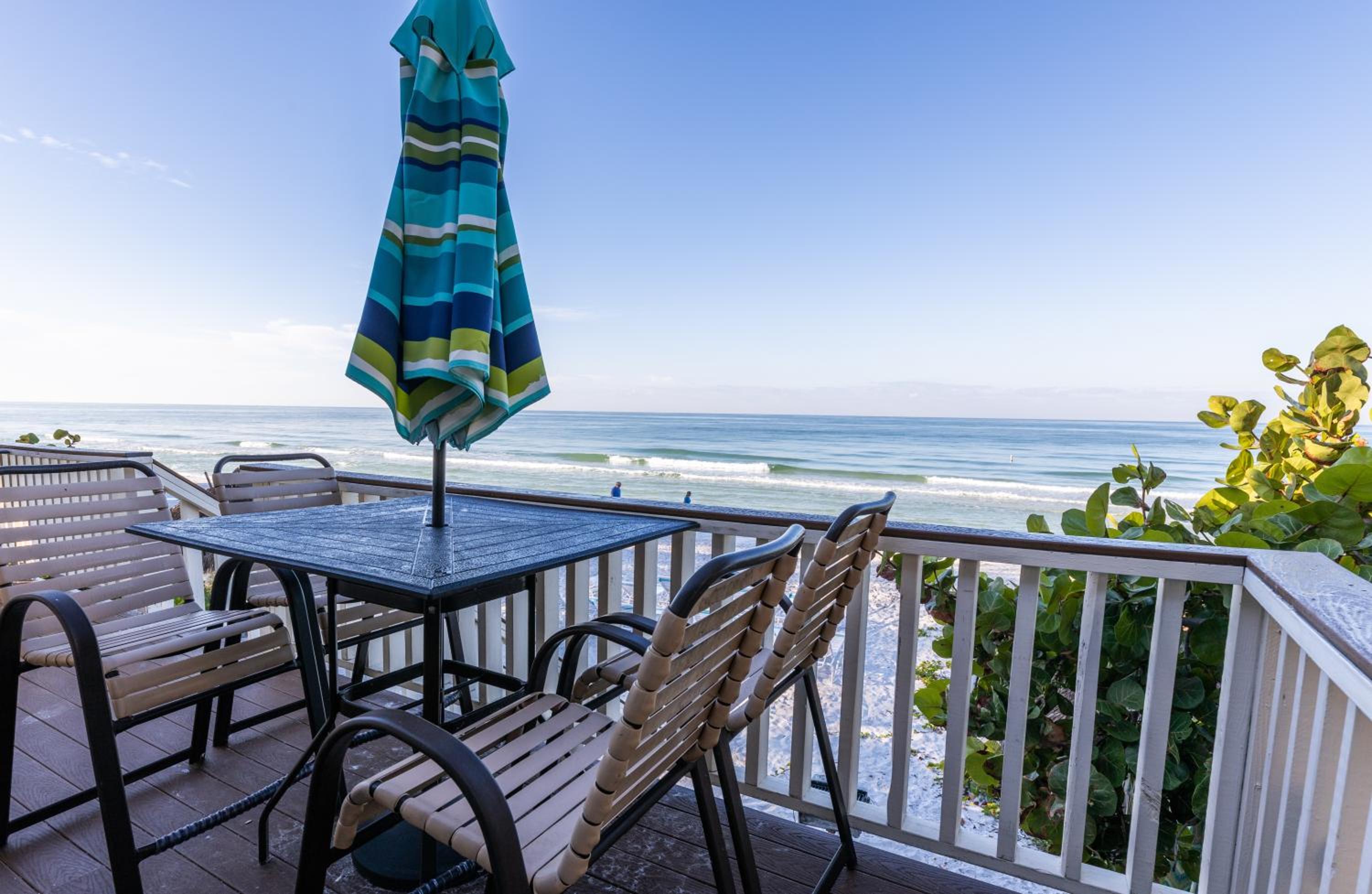 The view from our porch. Didn't know about any breakfast. Just walk out our door to the beach and the loungers. We loved it and will definitely be back soon.