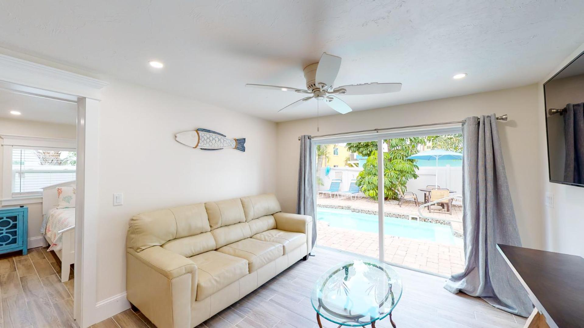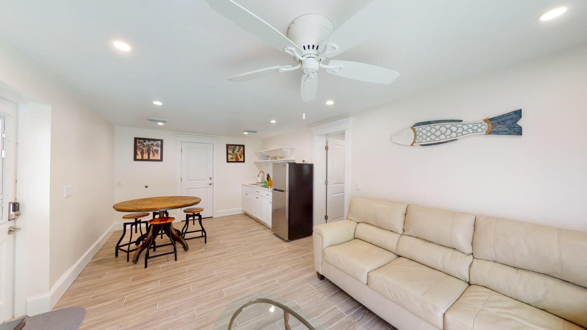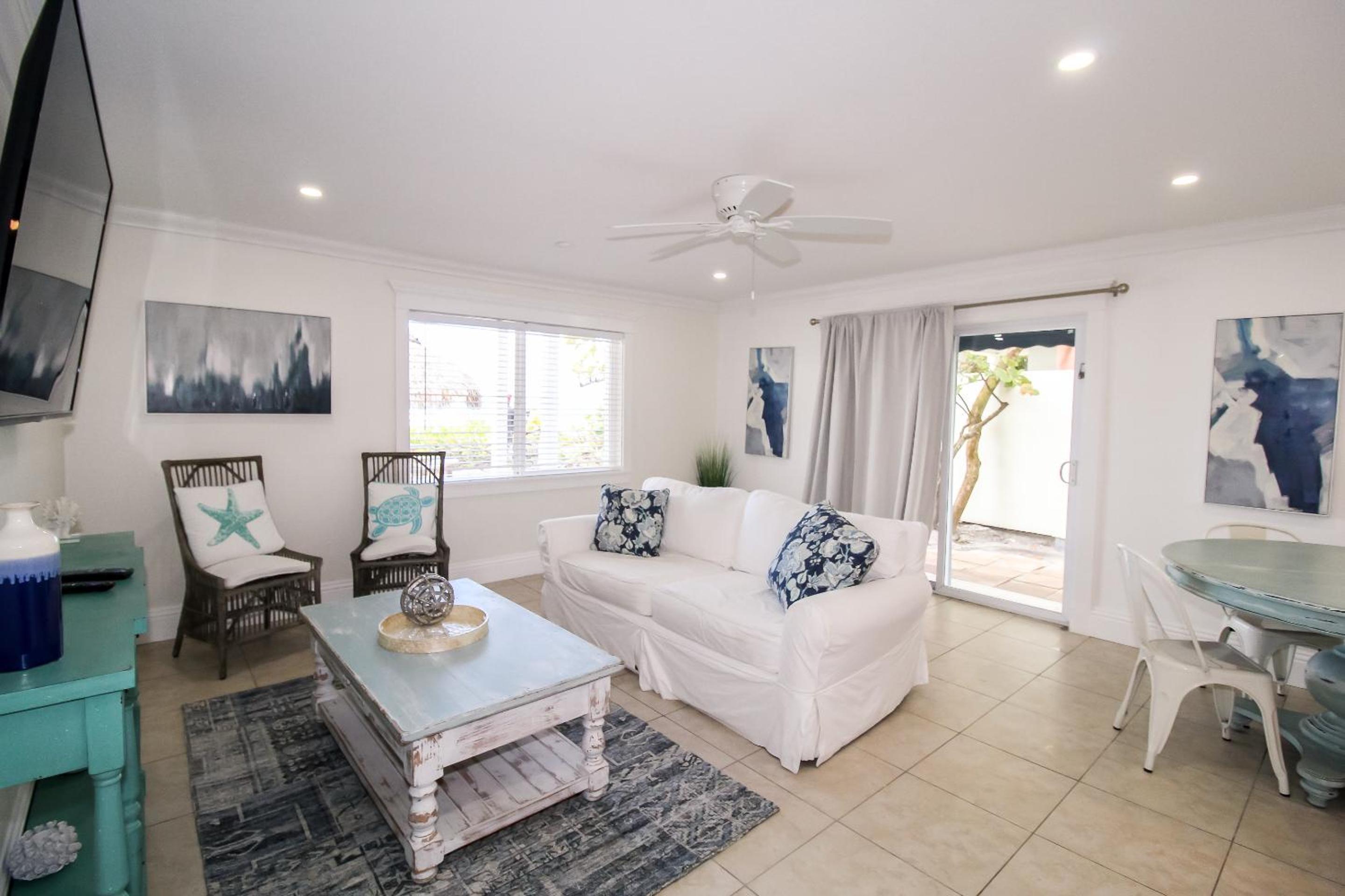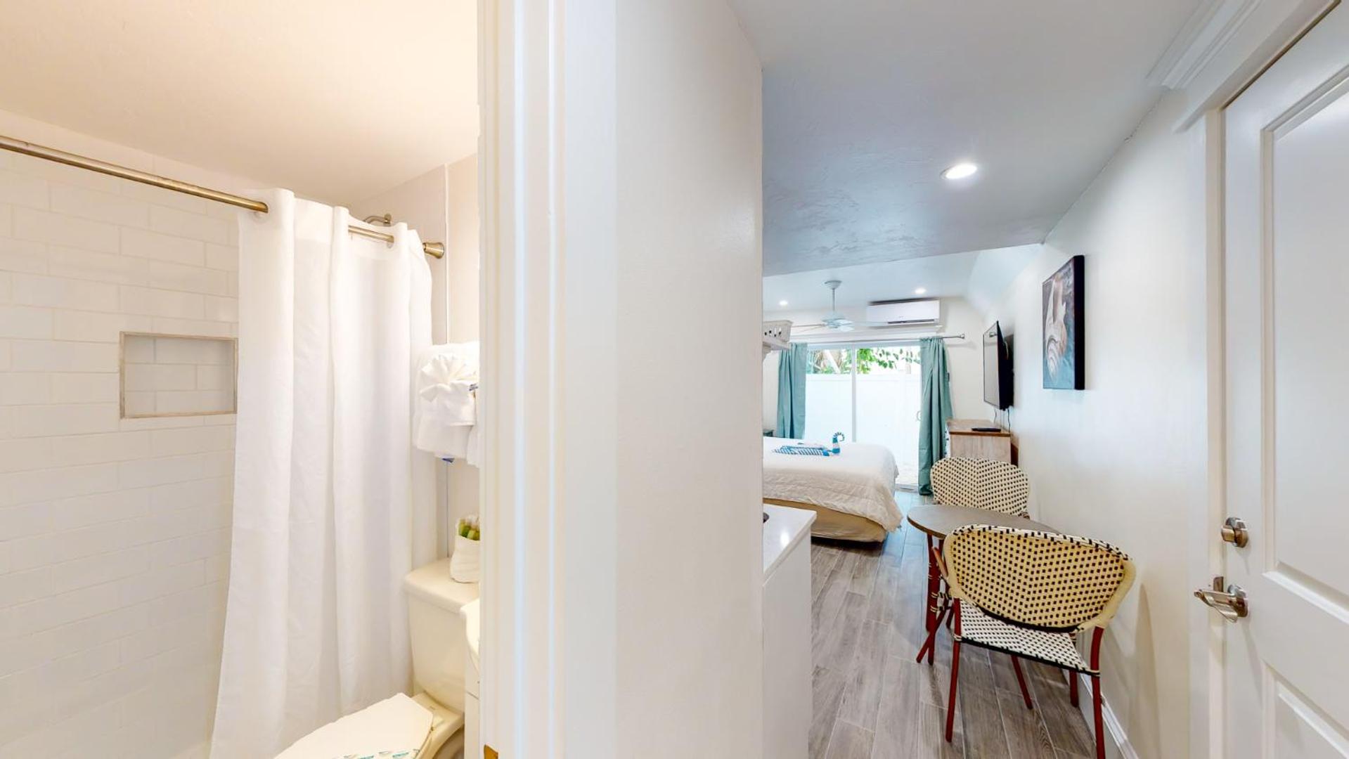 Free wifi,small fridge, and free parking.You have access to 2 lounge chairs and umbrella.there were other buildings that are part of this business, but I preferred this smaller version.It was a beautiful room.It also had a outside shower to use before you go into your room.