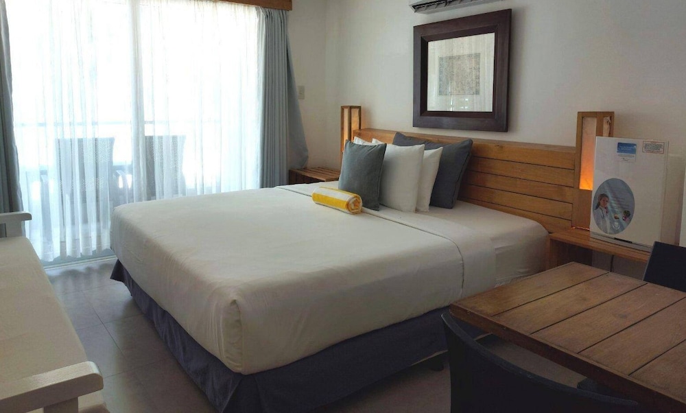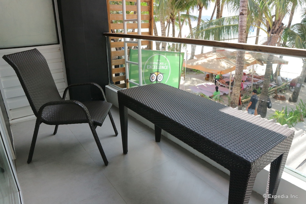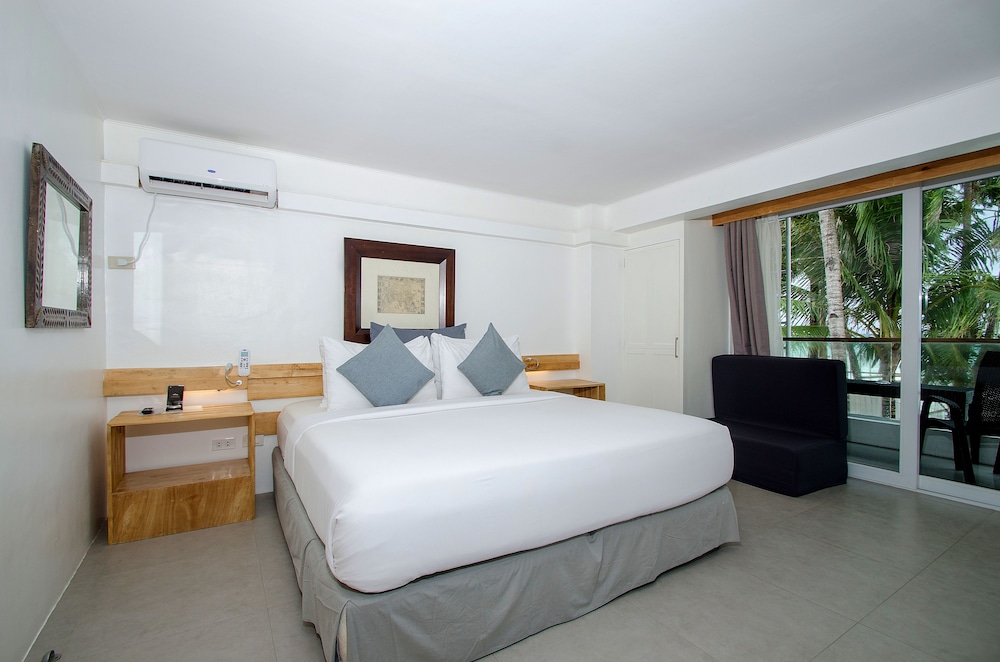 Pros: View is breathtaking. It is right at the beachfront and no hotel would give you this view at such a steal price. Premier beach view room is huge too, it has two extra beds. It can fit 4 people. Breakfast is good. Location is fantastic too. It is in Station 1 near Astoria dock so the tours and activities are just in front of the hotel.. You can easily book for paraw sunset sailing which is hard if you are not near because a lot of tourists try to book it at sunset.